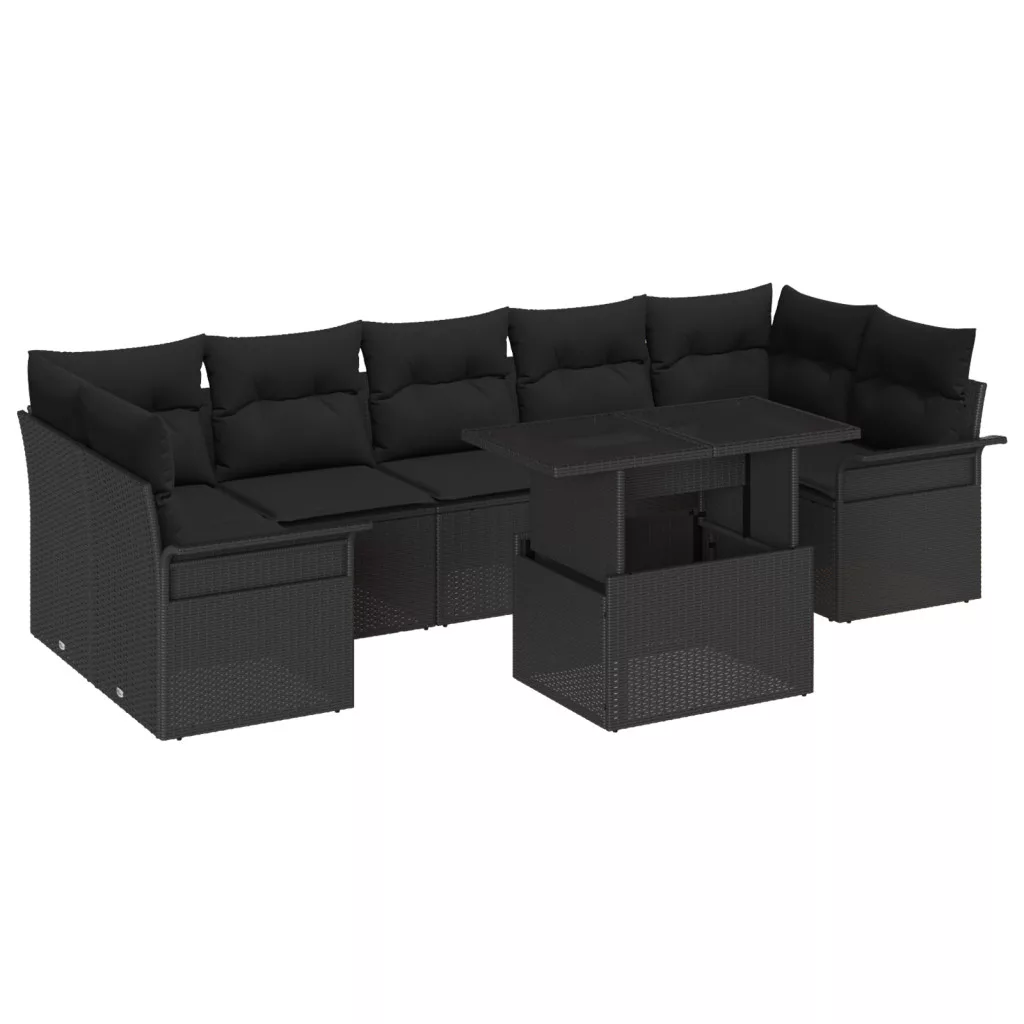 8 Darabos Kert Szófa Szett Párnákkal Fekete Polirattan
