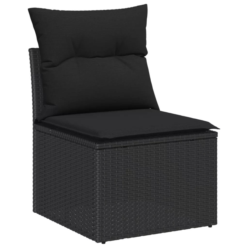 8 Részes Kertibútor Szett Párnákkal Fekete Polirattan Akác