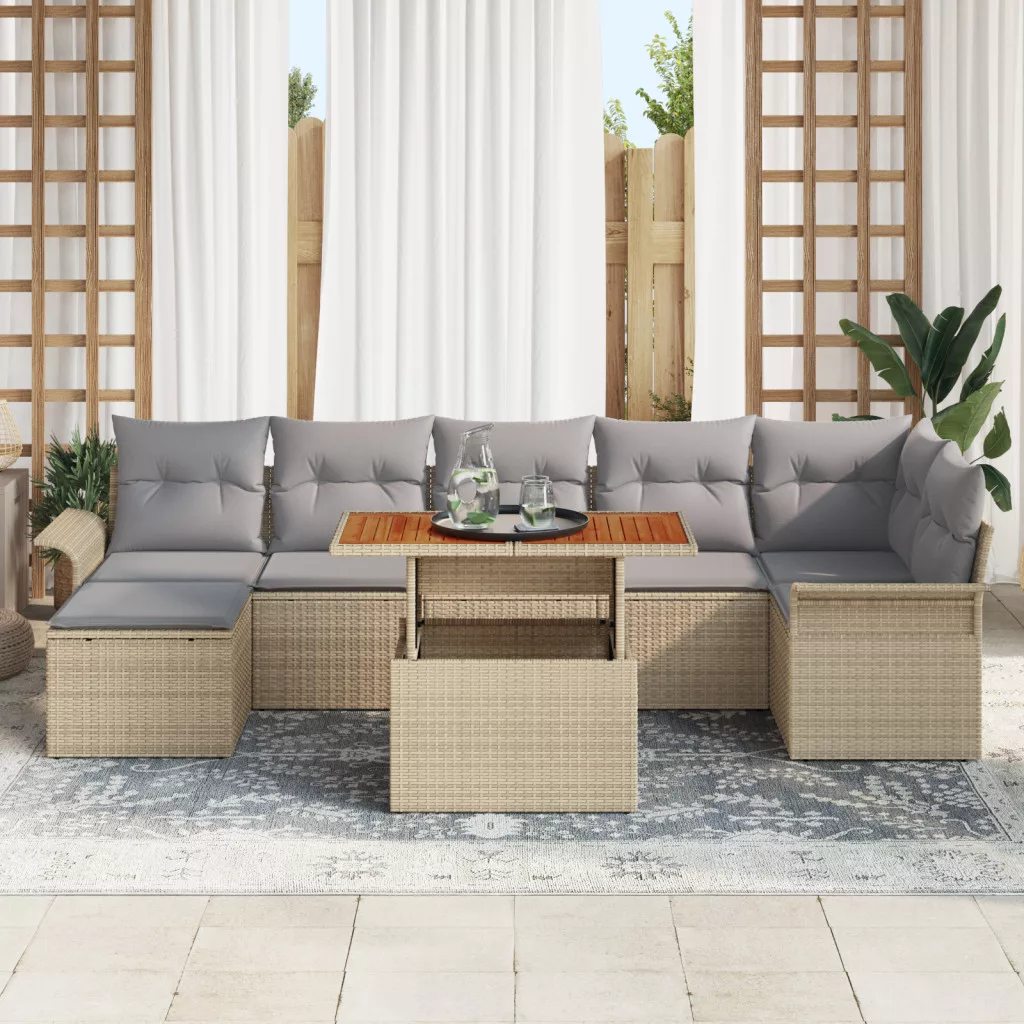 8 darabos kerti étkező szett párnákkal Bézs Poli Rattan Akác