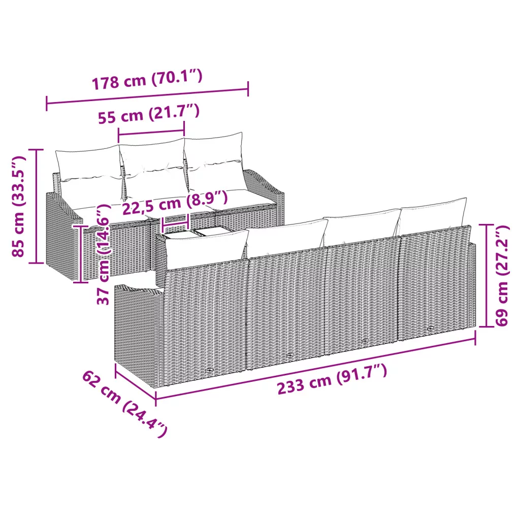 8 darabos kerti kanapészett párnákkal fekete polirattan