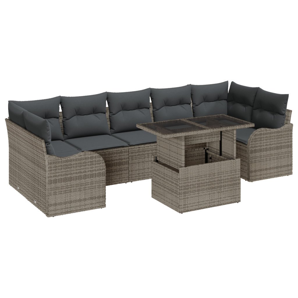 8 db kerti kanapé szett párnákkal szürke poli rattan
