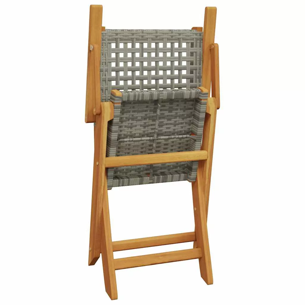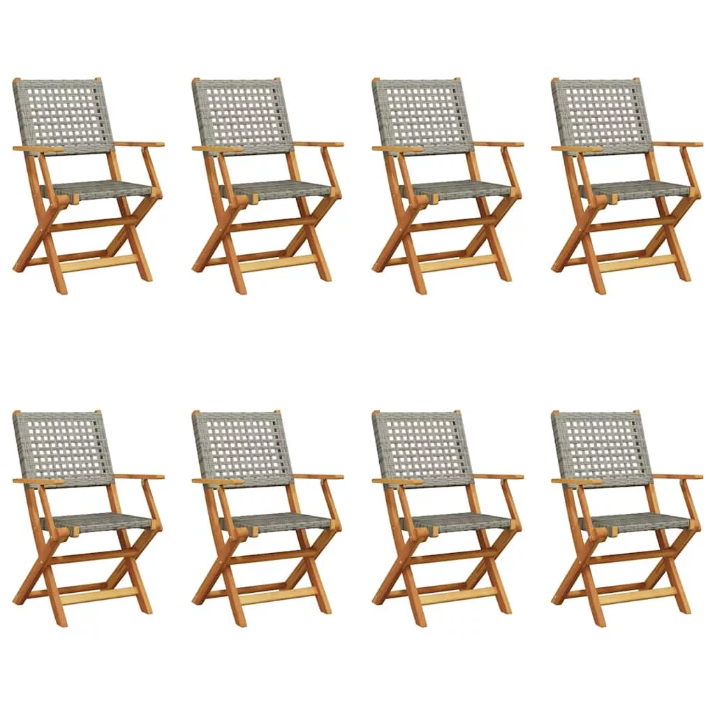 8 db szürke polyrattan és tömör fa összecsukható kerti szék