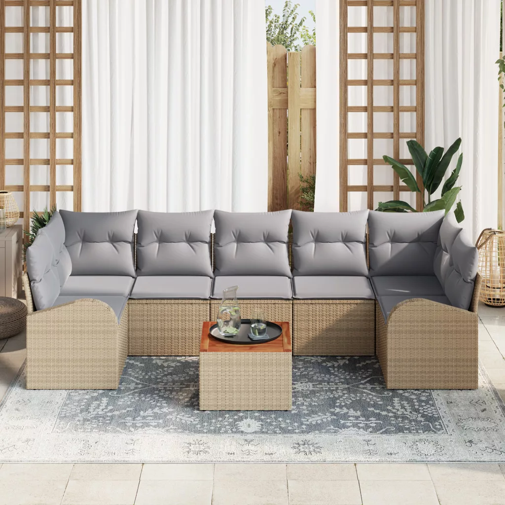 8 részes Kertibútor Szett Párnákkal Bézs Polirattan Akác