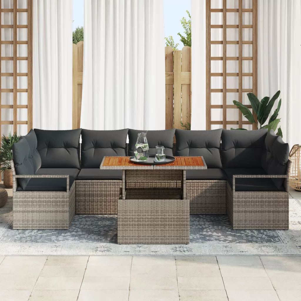 8 részes kertbútorgarnitúra párnákkal szürke poli rattan akáciából