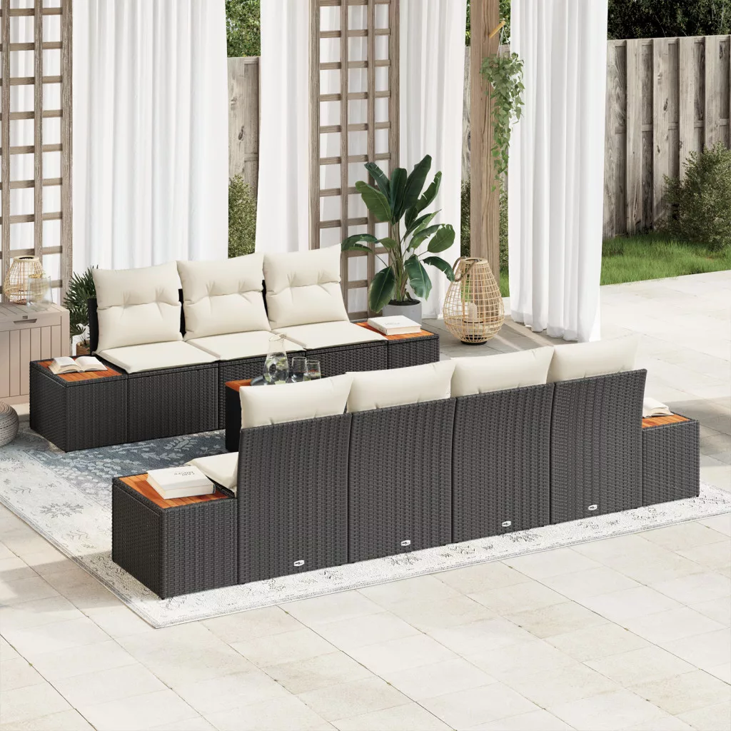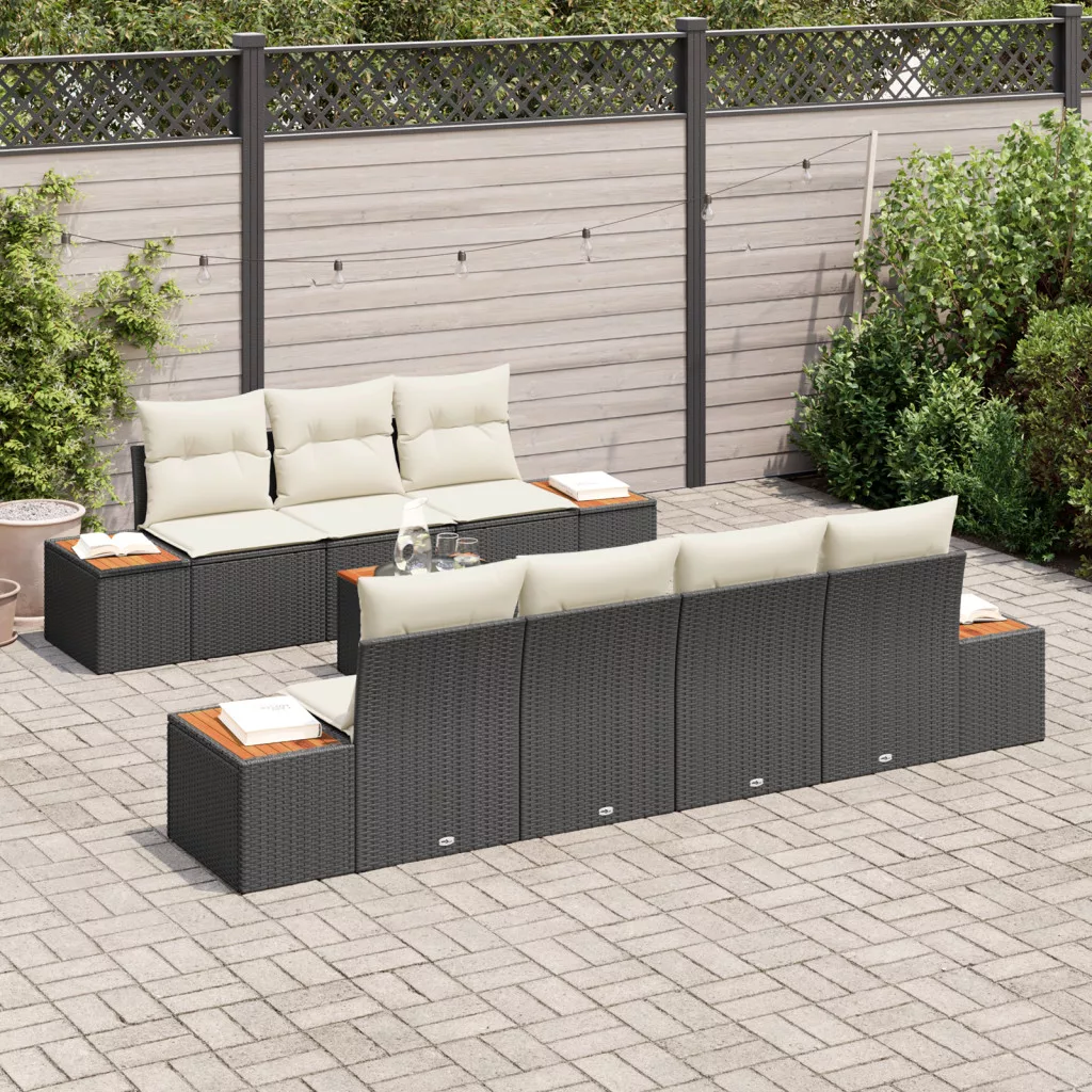 8 részes kerti kanapé szett párnákkal fekete poly rattan akác