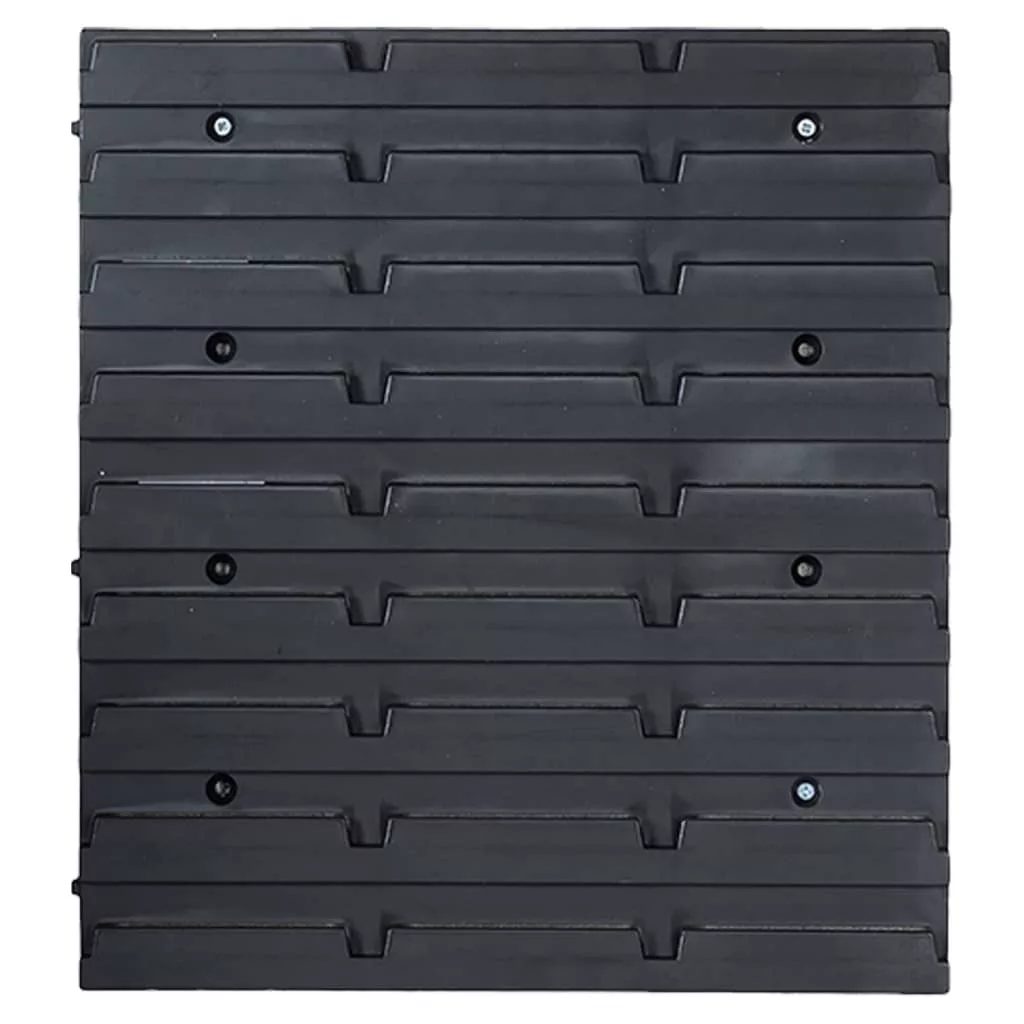 Tartson rendet garázsában, műhelyében vagy alkotóműhelyében ezzel a falra erősíthető tárolókészlettel. Az egymásra helyezhető dobozokkal rendelkező praktikus állvány számos lehetőséget kínál apró tárgyak, például csavarok, szögek, anyák, aljzatok, szerelvények stb. tárolására. A 4 fali panelen különböző rögzítő tartozékok és 30 doboz helyezhető el, amelyek az apró alkatrészek könnyebb áttekintése érdekében felcímkézhetőek. A tárolódobozokat egyenként veheti ki, és egymásra rakhatja őket. A növelhető méretű tárolószett könnyen felszerelhető a garázs vagy műhely falára. A tárolódoboz-készlet flexibilitásának köszönhetően minden igényét kielégíti.