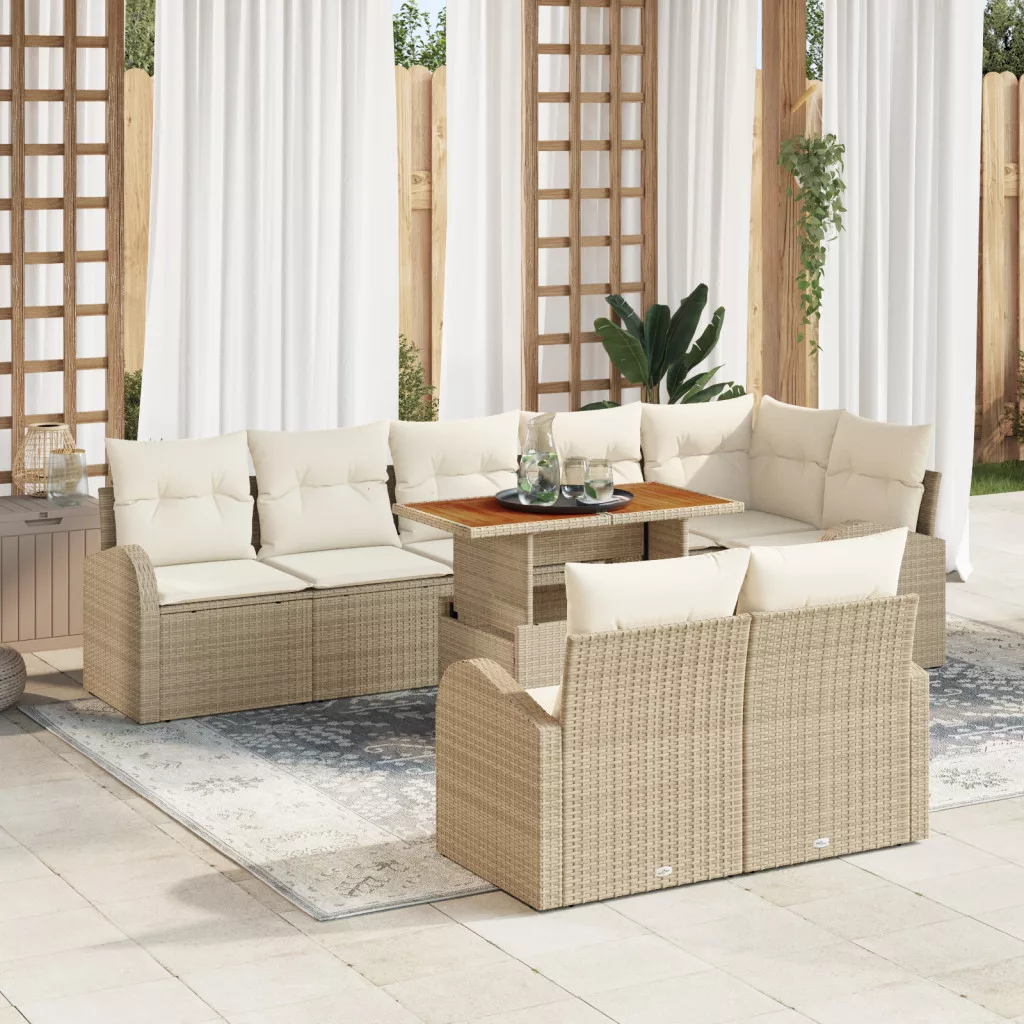 9 Darabos Kerti Étkező Készlet Párnákkal Bézs Poli Rattan Akácia