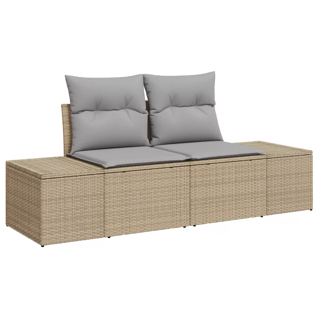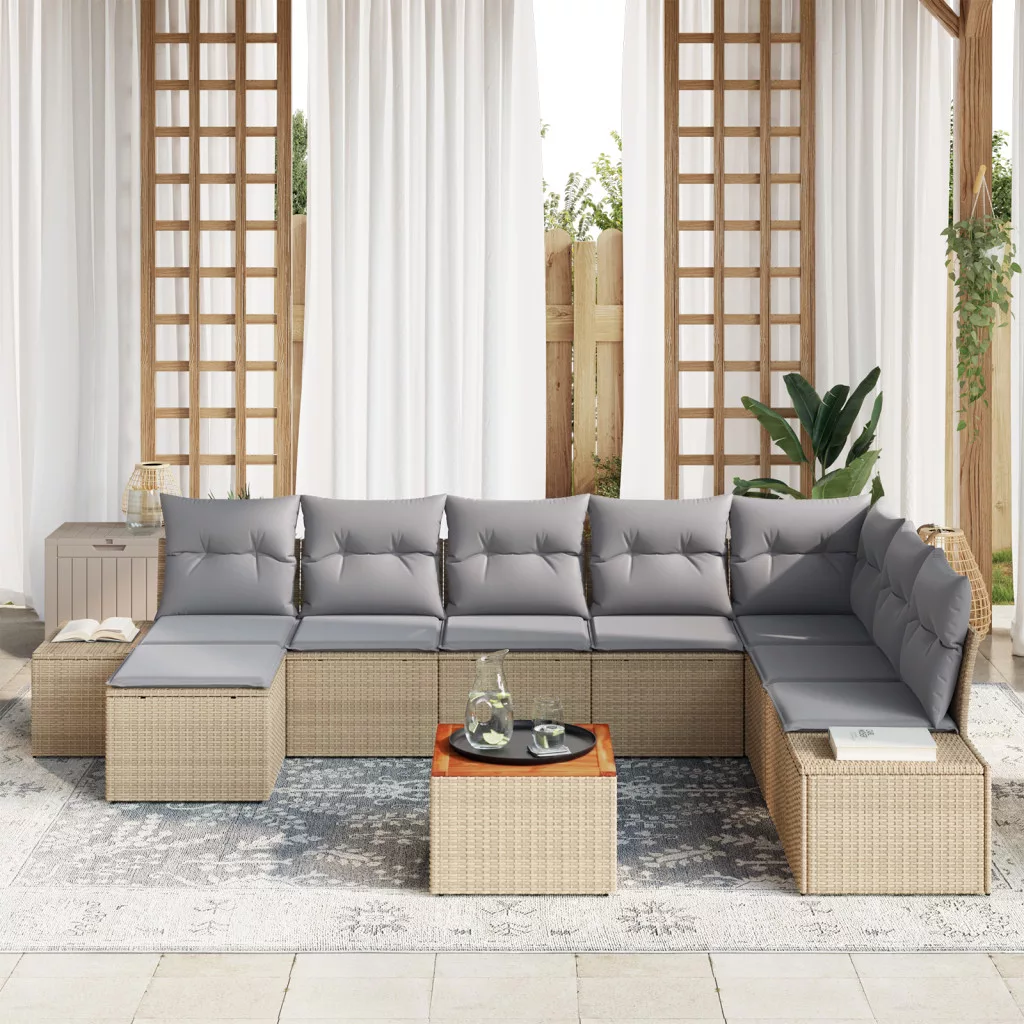 9 Darabos Kerti Kanapé Készlet Párnákkal Bézs Poli Rattan Akác