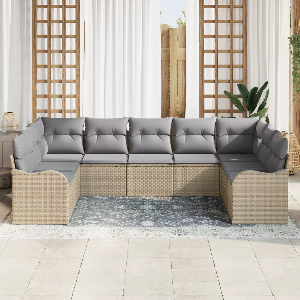 9 Darabos Kerti Kanapékészlet Párnákkal Bézs Poli Rattan