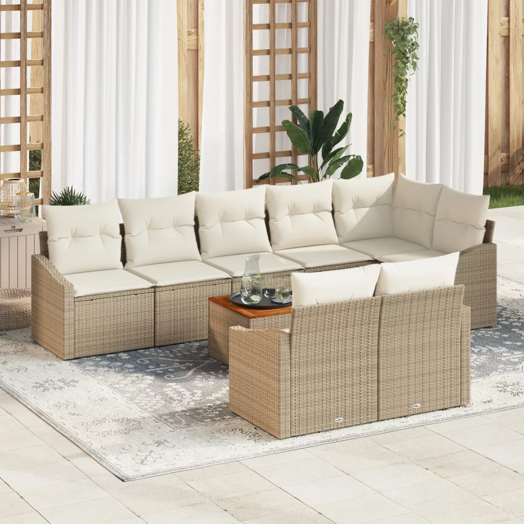 9 Darabos Kerti Shofa Szett Párnákkal Bézs Poli Rattan Akác