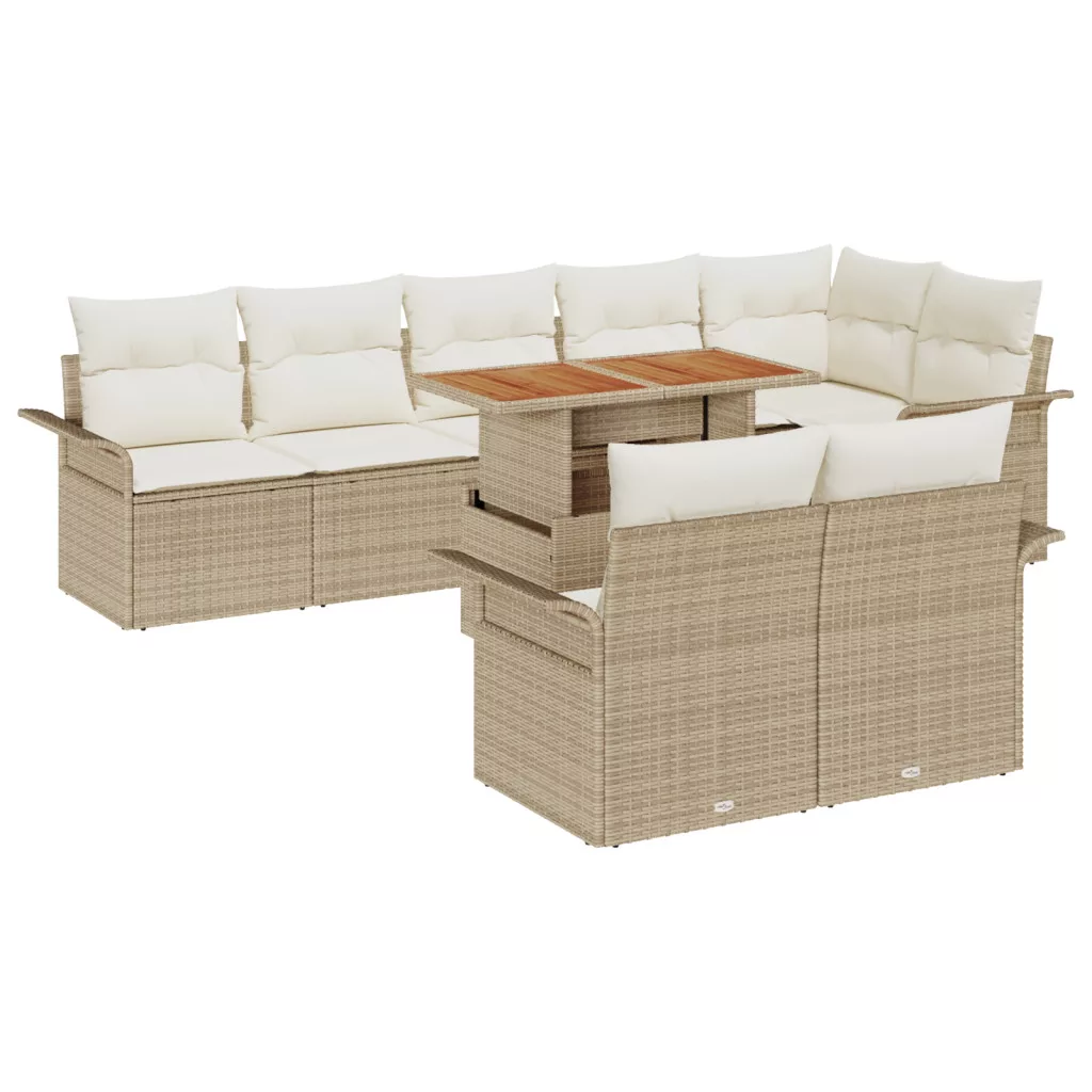 9 Részes Kert Étkező Garnitúra Párnákkal Bézs Poli Rattan Akác