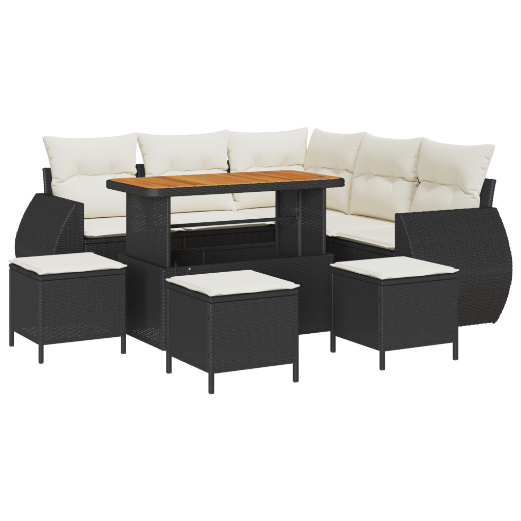 9 darabos Kerti Kanapé Szett Párnával Fekete PE Rattan Akác