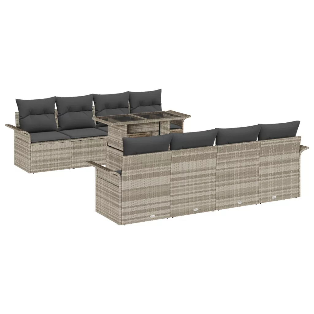 9 darabos kert kanapé szett párnákkal világosszürke poli rattan