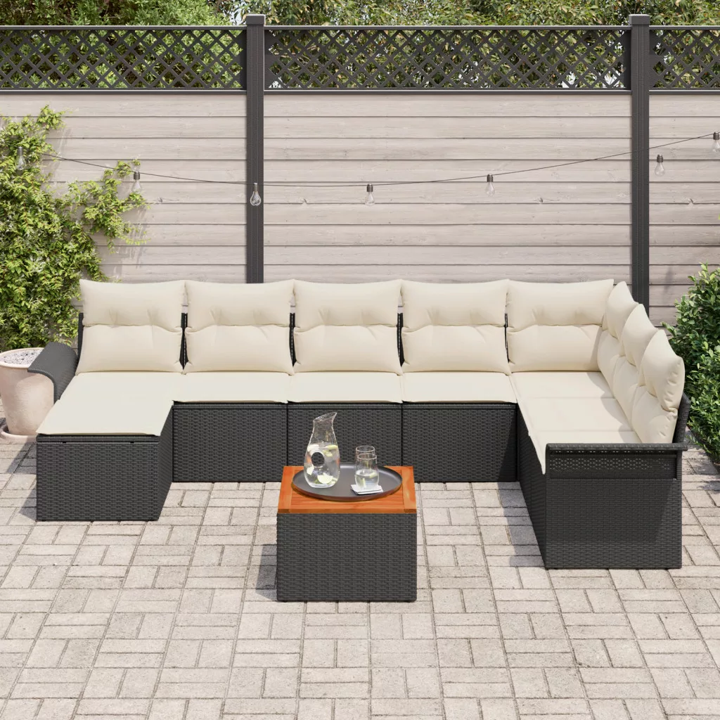 9 darabos kertibútor szett párnákkal fekete műratán akác