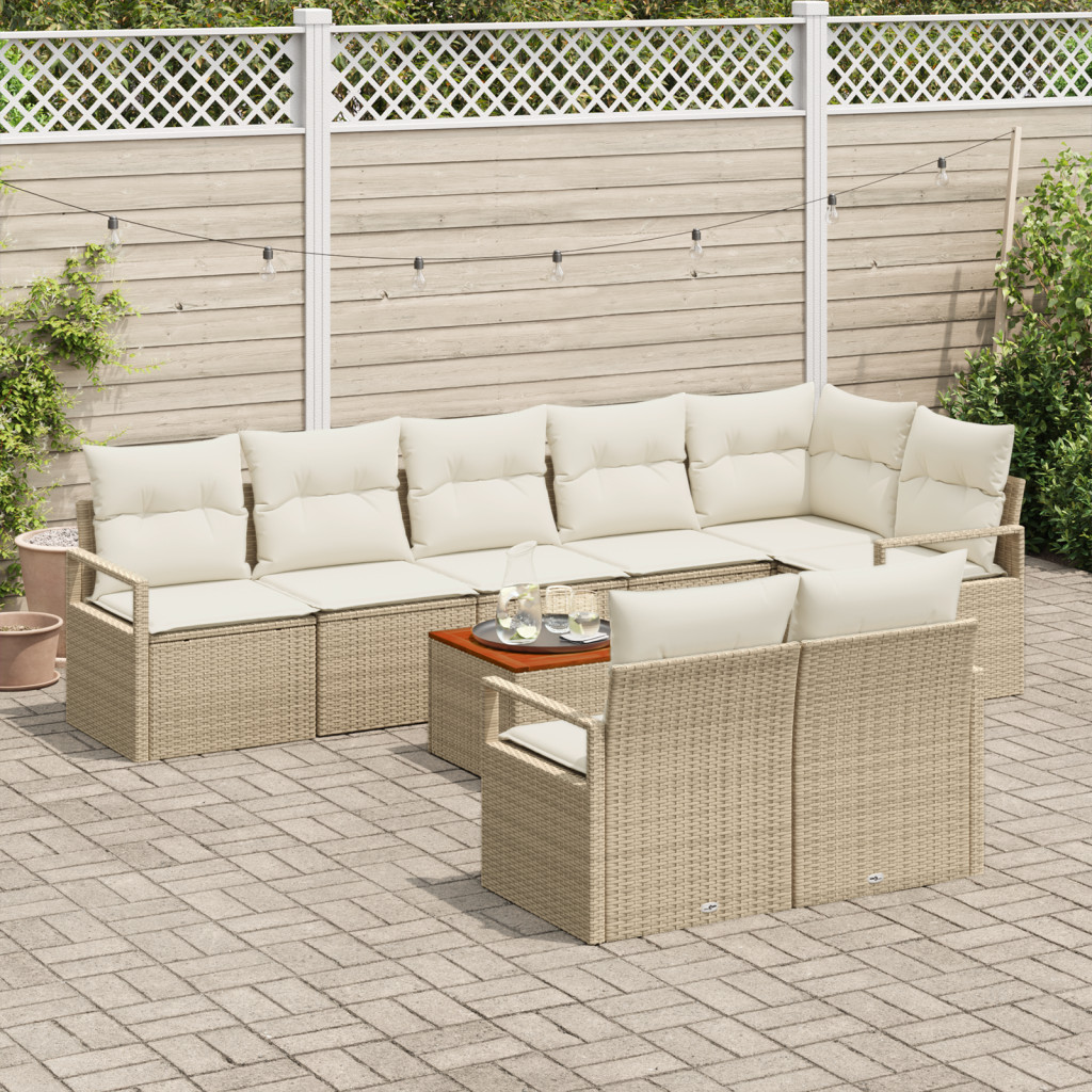 9 részes kerti kanapé szett párnákkal Bézs poly rattan akác