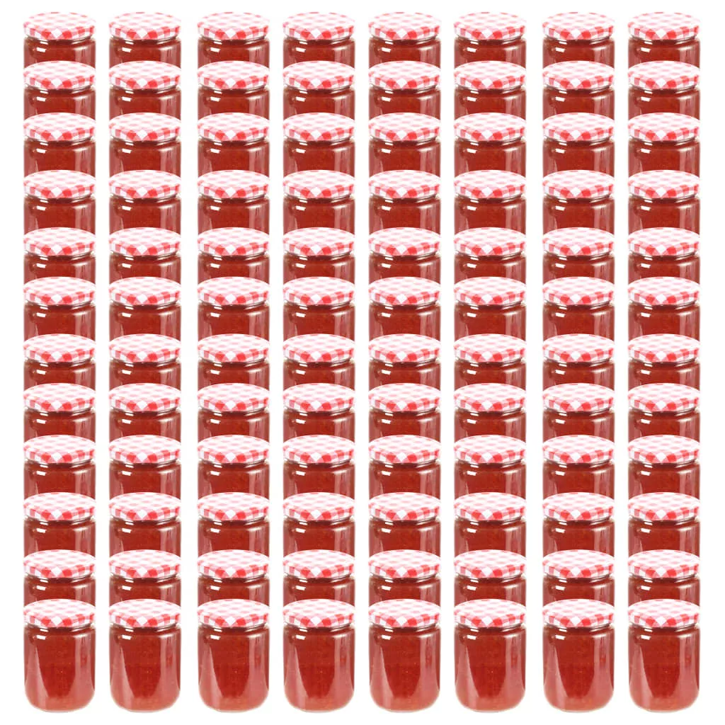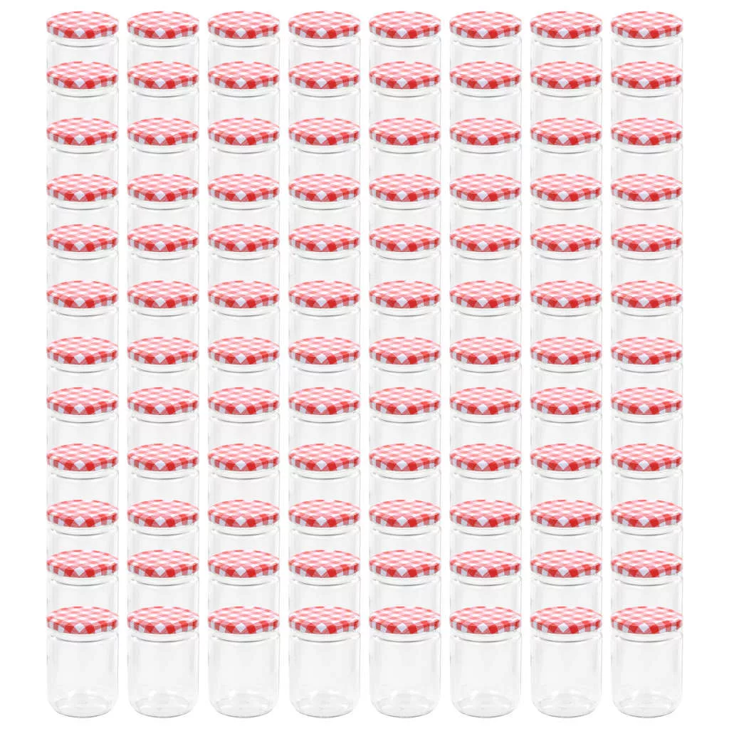96 db 230 ml-es befőttesüveg piros-fehér tetővel