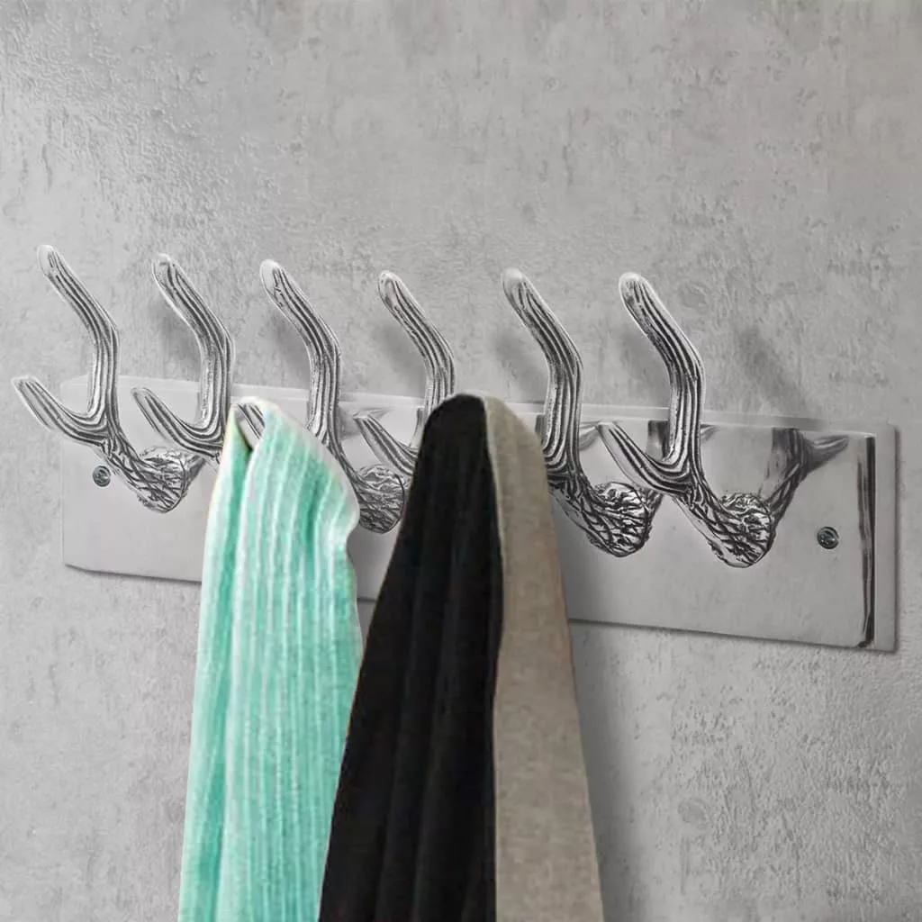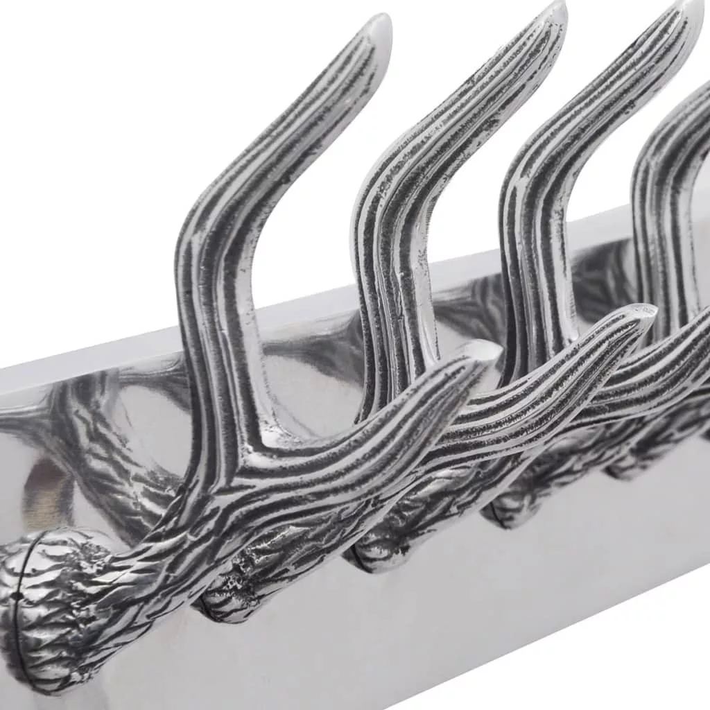 Ez a fogas gyönyörű agancsokkal díszített, melyek úgy díszítő elemként, mint praktikus hozzáadásként is szerepelhet szobájában. A láthatatlan felszerelési konzolaival, egy ideális hellyel szolgál kabátjai, kalapjai, táskái, sálai, stb. felakasztására. Kiváló minőségű, fényezett alumíniumból van. Felépítése szilárd és rendkívül tartós. 6 akasztóval rendelkezik, a kedvelt dolgai felakasztására. Ez a fogas beilleszkedik bármilyen berendezésbe, és egy csupasz falat, vagy egy unalmas szekrényt, egy valódi mesterművé változtatja!