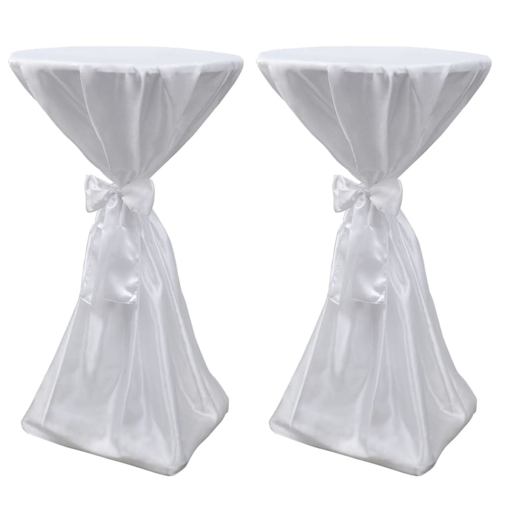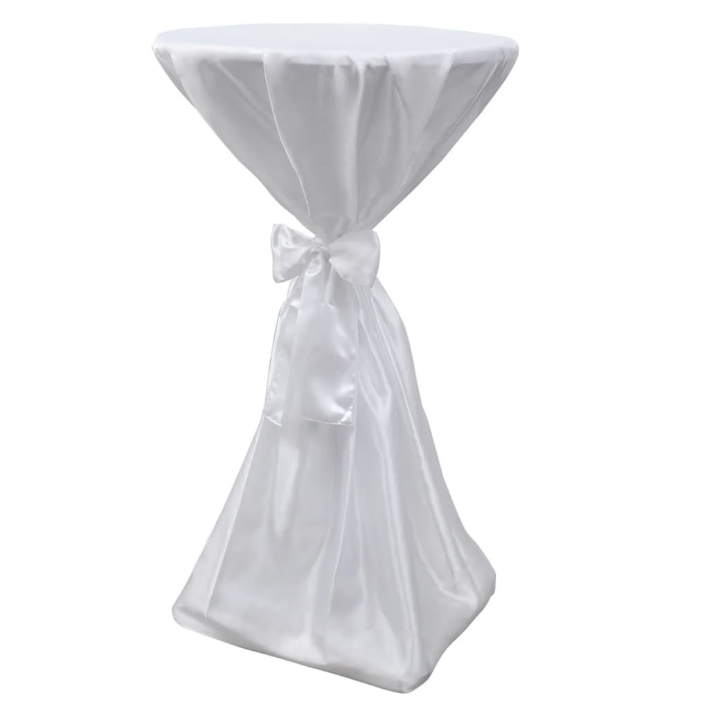 Ez az asztal borító alkalmas kerek bárasztalokhoz, ideális választás szépíteni esküvőket, partikat és banketteket.A fedél kötött egy mellékelt szalaggal,és egy csokor van rajta, hogy ez sokkal elegánsabb legyen. A burkolat klasszikus szatén anyagból készűlt, amely könnyen tisztitható.A szállítás tartalmaz 2 db asztalterítőt.
