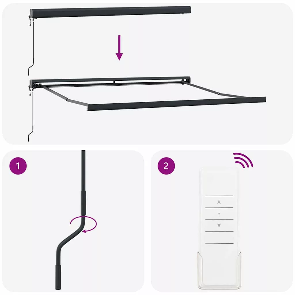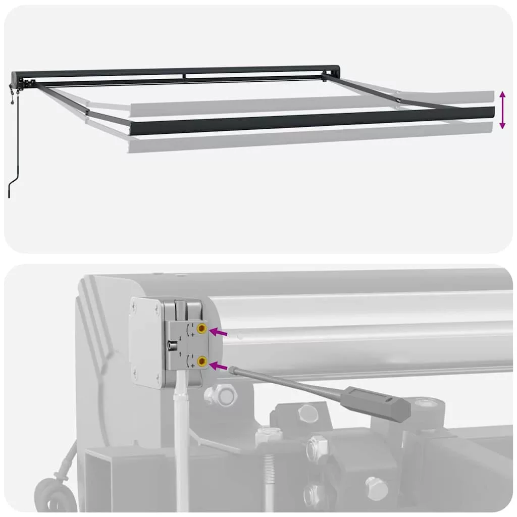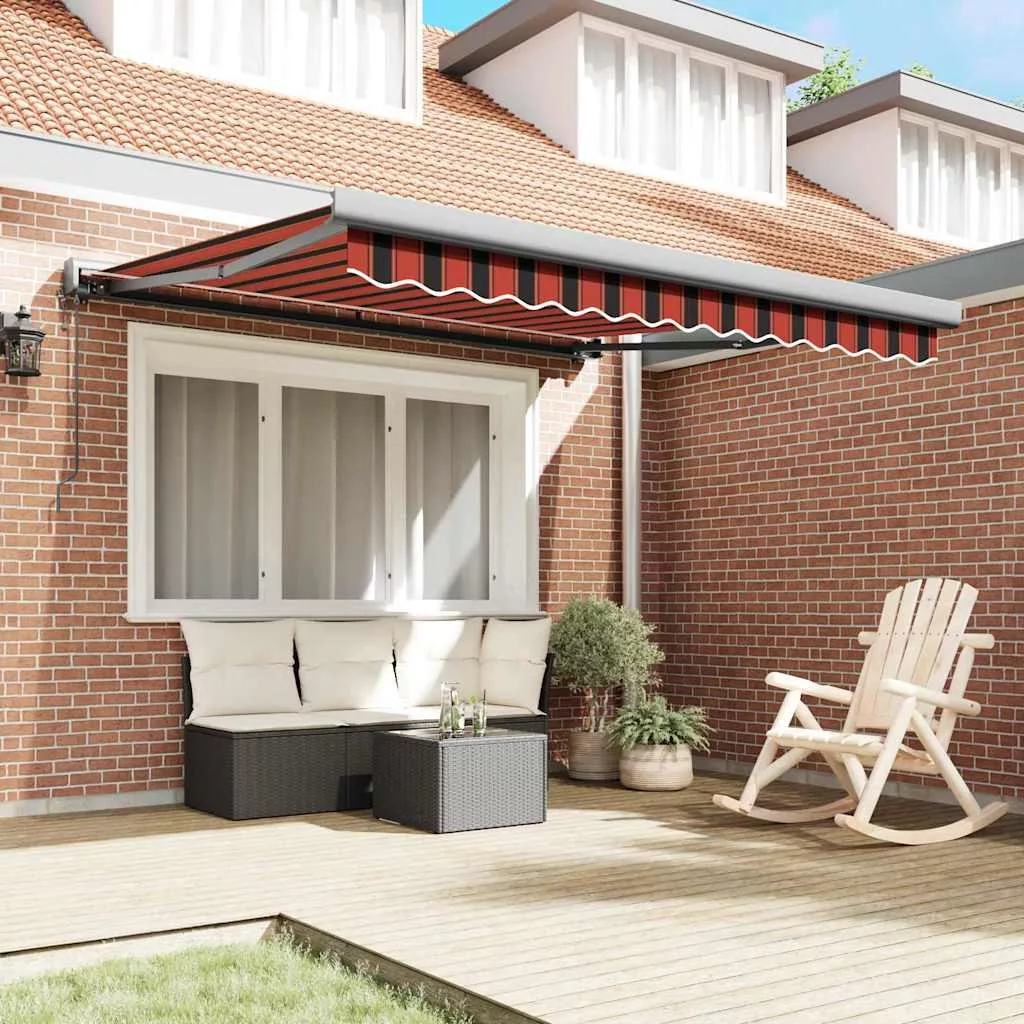 A vidaXL Automatikus behúzható napellenző az, amire szükséged van, hogy árnyékot és stílust adj a kültéri részeidnek. Tökéletes teraszokhoz és pihenőhelyekhez, ahol a praktikum találkozik a modern kinézettel. Magas minőségű poliészter anyagból és robusztus fémből készült kerettel, ez a napellenző hosszú távra van tervezve és jól mutat. Az elegáns narancssárga és barna csíkok bármilyen kültéri térhez illenek. Ez a készülék 8 éves vagy annál idősebb gyermekek, valamint csökkent fizikai, érzékszervi vagy mentális képességekkel rendelkező személyek, vagy tapasztalatlanok és tudás híján lévők számára is használható, ha megfelelő felügyeletet kaptak, vagy útmutatást kaptak a készülék biztonságos használatáról, és megértik a vele járó veszélyeket. A gyermekek nem játszhatnak a készülékkel. A tisztítást és karbantartást a gyermekek nem végezhetik felügyelet nélkül. Ha a tápkábel sérült, azt a gyártónak, annak szervizügynökének vagy hasonlóan képzett személynek kell kicserélnie, hogy elkerülje a veszélyeket. FIGYELEM: Fontos biztonsági utasítások. Az emberek biztonsága érdekében fontos, hogy kövessük ezeket az utasításokat. Őrizze meg ezeket az utasításokat. FIGYELEM: Fontos biztonsági utasítások. Kövesse az összes utasítást, mivel a helytelen telepítés súlyos sérüléshez vagy akár halálhoz vezethet. Ne engedje, hogy gyermekek játsszanak a vezérlő eszközzel. Tartsa a távirányítót távol a gyermekektől. Ne működtesse a napernyőt, miközben karbantartást, például ablakmosást végeznek a közelben. A meghajtó mozgó alkatrészeit legalább 2,5 m magasságban kell telepíteni a padlóról, vagy más olyan szinten, amely hozzáférést biztosíthat hozzájuk. A meghajtó telepítése előtt távolítsa el az összes felesleges vezetéket, és kapcsolja ki azokat az eszközöket, amelyek nem szükségesek a működtetéshez. Az eltorzított kikapcsoló kapcsoló működtető eleme közvetlen látótávolságon belül legyen a meghajtott részhez, de távol a mozgó alkatrészektől. Minimum 1,5 m magasságban kell telepíteni.Veszély! Kinyitáskor a rugó erősen kipattan. NE távolítsa el a kötelet addig, amíg az összes összeszerelési lépést be nem fejezte, az összes csavart nem rögzítette és az elem nincs a falhoz rögzítve! Figyelem! Legyen óvatos a karok kilazításakor, mert azok feszültség alatt állnak! Az összecsukható kar hirtelen kiengedése sérülést okozhat. Figyelmeztetés: A termék használata előtt el kell olvasni a használati útmutatót. Figyelem: A fagyos körülmények között történő használat kárt tehet a termékben. Külső felhasználás épületeknél és egyéb építkezéseknél.