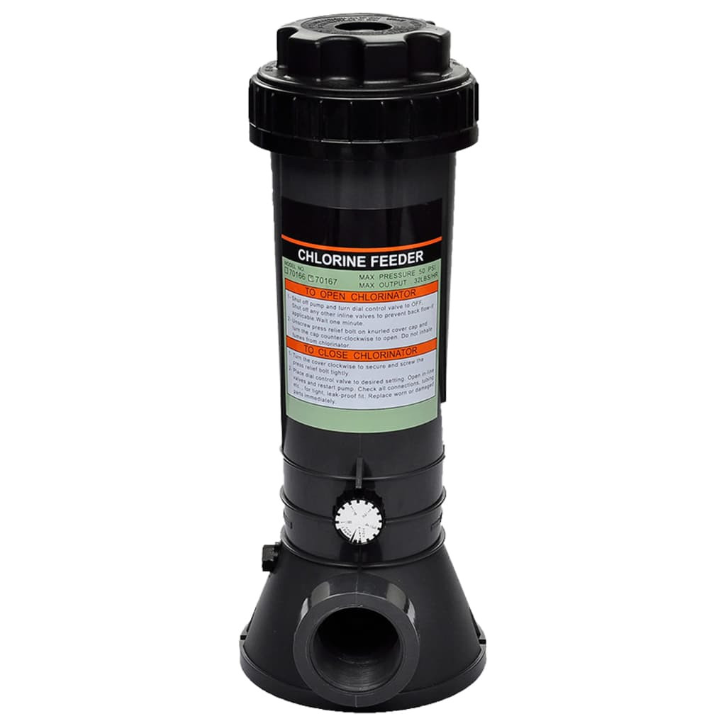 Ezt az automata klóradagolót a szűrőrendszer mellé szükséges telepíteni. A rendszer nyomáskülönbségei működtetik, ami vizet vezet át az adagolón. A vezérlőtárcsa használata egyszerű és lehetővé teszi az adagolási sebesség beállítását. A szelep beállításával a FULL (több klór) és OFF (kevesebb klór) pozíció között, könnyedén meghatározhatja a klór mennyiségének adagolását, hogy megőrizze a megfelelő klórszintet a medencében.