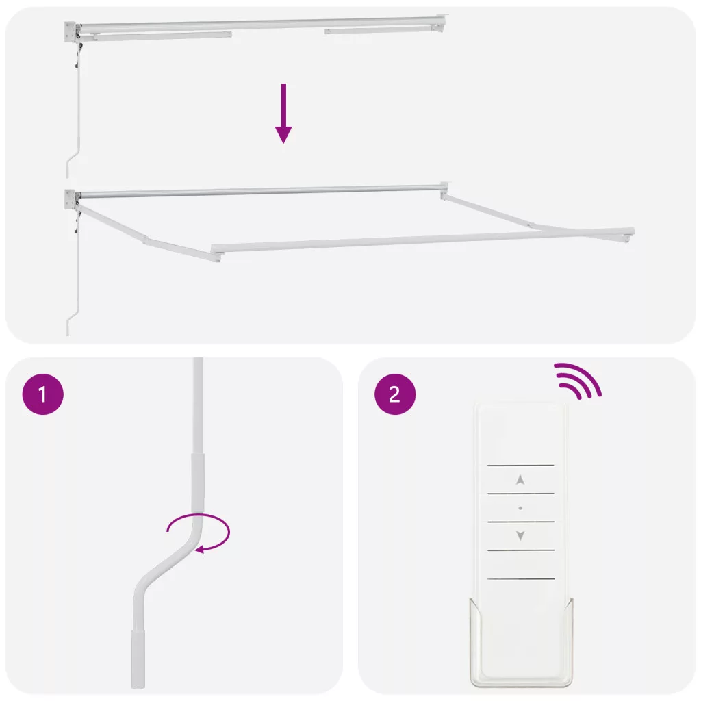 Ez a Behúzható Napellenző azért készült, hogy biztosítsa az árnyékot és növelje a kültéri kényelmet. Stílusos csíkos dizájnja és élénk színei nagyszerű kiegészítők az erkélyedhez vagy teraszodhoz, védve a napfénytől és a könnyű záporoktól, egyben feldobva a kültéri teredet. Tartós kivitel: Az UV-álló poliészter napellenző napfényben is sokáig tart, biztosítva, hogy egész nyáron használható legyen. Multi-funkcionális: Nagyszerű erkélyekre vagy teraszokra, árnyékot ad a forró napokon; tökéletes lazításhoz vagy kültéri étkezésekhez. Állítható szög: 80 fokos állítható szög biztosítja a legjobb napfény-biztosságot, lehetővé téve, hogy módosítsd, ahogy a nap mozog. Könnyen használható: A visszahúzható funkció felhasználóbarát; csak húzd meg a fogantyút az árnyékoló kihúzásához vagy visszahúzásához anélkül, hogy gond lenne. Stílusos és funkcionális: Modern csíkjaival ez a napellenző trendi megjelenést ad a kültéri berendezésednek, feldobva otthonod külsejét. Veszély! Kinyitáskor a rugó erősen kipattan. NE távolítsa el a kötelet addig, amíg az összes összeszerelési lépést be nem fejezte, az összes csavart nem rögzítette és az elem nincs a falhoz rögzítve! Figyelem! Legyen óvatos a karok kilazításakor, mert azok feszültség alatt állnak! Az összecsukható kar hirtelen kiengedése sérülést okozhat. Figyelmeztetés: A termék használata előtt el kell olvasni a használati útmutatót. Figyelem: A fagyos körülmények között történő használat kárt tehet a termékben. Külső felhasználás épületeknél és egyéb építkezéseknél. Ne engedje, hogy a gyerekek a redőny vezérlőeszközével játszanak. Tartsa a távirányítót távol a gyermekektől.
