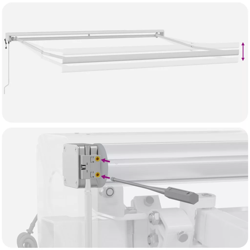 Hozd élettel a kültéri területedet a vidaXL Kézi Behúzható Napernyővel, ami ötvözi a stílust és a praktikusságot. Ez a napernyő UV-álló anyagokkal, vízlepergető képességgel és trendi csíkos dizájnnal büszkélkedik, kiváló napvédelmet és stílusos megjelenést nyújtva. Ez a készülék 8 éves vagy annál idősebb gyermekek, valamint csökkent fizikai, érzékszervi vagy mentális képességekkel rendelkező személyek, vagy tapasztalatlanok és tudás híján lévők számára is használható, ha megfelelő felügyeletet kaptak, vagy útmutatást kaptak a készülék biztonságos használatáról, és megértik a vele járó veszélyeket. A gyermekek nem játszhatnak a készülékkel. A tisztítást és karbantartást a gyermekek nem végezhetik felügyelet nélkül. Ha a tápkábel sérült, azt a gyártónak, annak szervizügynökének vagy hasonlóan képzett személynek kell kicserélnie, hogy elkerülje a veszélyeket. FIGYELEM: Fontos biztonsági utasítások. Az emberek biztonsága érdekében fontos, hogy kövessük ezeket az utasításokat. Őrizze meg ezeket az utasításokat. FIGYELEM: Fontos biztonsági utasítások. Kövesse az összes utasítást, mivel a helytelen telepítés súlyos sérüléshez vagy akár halálhoz vezethet. Ne engedje, hogy gyermekek játsszanak a vezérlő eszközzel. Tartsa a távirányítót távol a gyermekektől. Ne működtesse a napernyőt, miközben karbantartást, például ablakmosást végeznek a közelben. A meghajtó mozgó alkatrészeit legalább 2,5 m magasságban kell telepíteni a padlóról, vagy más olyan szinten, amely hozzáférést biztosíthat hozzájuk. A meghajtó telepítése előtt távolítsa el az összes felesleges vezetéket, és kapcsolja ki azokat az eszközöket, amelyek nem szükségesek a működtetéshez. Az eltorzított kikapcsoló kapcsoló működtető eleme közvetlen látótávolságon belül legyen a meghajtott részhez, de távol a mozgó alkatrészektől. Minimum 1,5 m magasságban kell telepíteni.Veszély! Kinyitáskor a rugó erősen kipattan. NE távolítsa el a kötelet addig, amíg az összes összeszerelési lépést be nem fejezte, az összes csavart nem rögzítette és az elem nincs a falhoz rögzítve! Figyelem! Legyen óvatos a karok kilazításakor, mert azok feszültség alatt állnak! Az összecsukható kar hirtelen kiengedése sérülést okozhat. Figyelmeztetés: A termék használata előtt el kell olvasni a használati útmutatót. Figyelem: A fagyos körülmények között történő használat kárt tehet a termékben. Külső felhasználás épületeknél és egyéb építkezéseknél.