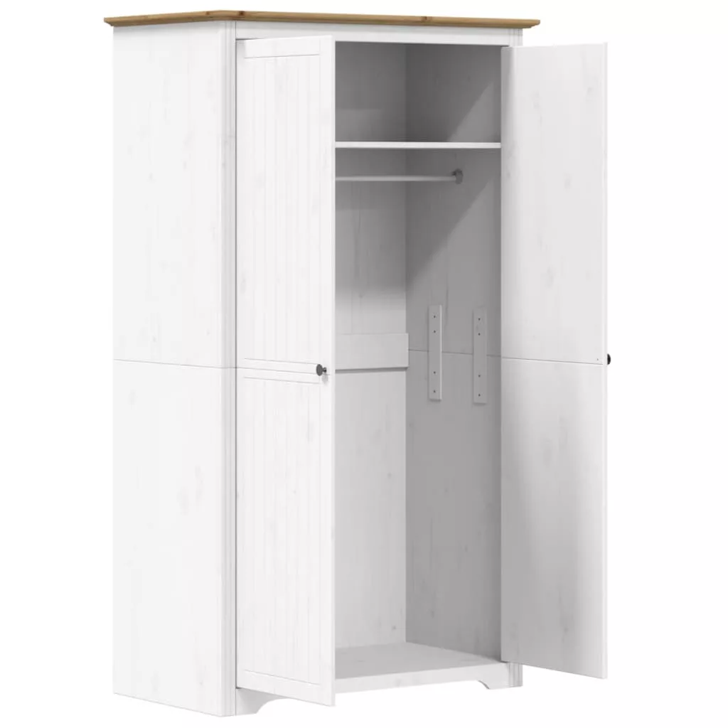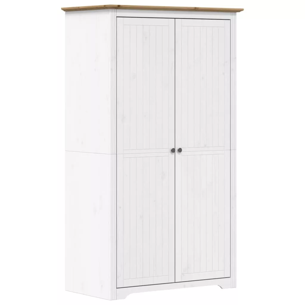 BODO fehér és barna tömör fenyőfa ruhásszekrény 99x53,5x173 cm
