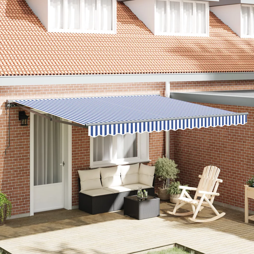 Behúzható napellenző Kék és Fehér 400x300 cm Poliészter és acél
