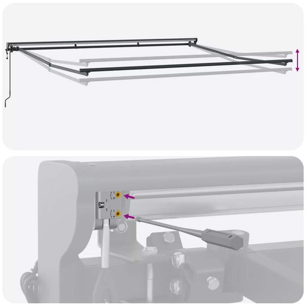 Ez a modern kültéri napellenző fantasztikus kiegészítője minden terasznak vagy kertnek. Stílusos ívei és friss kinézete nemcsak illik a kültéri tereidhez, hanem feldobja a nyári összejövetelek hangulatát is. Sokoldalú árnyékmegoldás, ideális családi vacsorákhoz vagy nyugodt időtöltéshez, rengeteg árnyékot és stílust kínál. UV-álló Design: Tökéletes a napos napokra, ez a napellenző olyan anyagokból készült, amik bírják a napot, így te és a vendégeid a hűs árnyékban lazíthattok anélkül, hogy aggódnotok kellene a kopás miatt. Modern, Sleek Megjelenés: Kortárs stílusa tiszta vonalakat és friss hangulatot kínál, így tökéletesen illik a mai kültéri trendekhez. Tényleg feldobja a kültéri életteredet. Állítható Karfák: Állítsd be a saját kényelmedért az állítható karfákat, amikkel mozgathatod a legjobb árnyék érdekében. Könnyű és kényelmes a kint ülni, még ha hosszabb ideig lazítasz is. Behúzható Funkció: A behúzható funkció lehetővé teszi, hogy könnyedén visszahúzd, amikor éppen nincs szükséged rá, ami szuper az időjárás változása esetén. Ezen kívül segít hosszabbítani az élettartamát, mert nem tartózkodik folyamatosan a napon. Összeszerelve a Nyári Szórakozáshoz: Össze kell raknod, de ne aggodj; egyszerű. Miután felállítottad, a kültéri tered egy árnyékos menedékké válik, ami tökéletes a pihenéshez vagy szórakozáshoz. Veszély! Kinyitáskor a rugó erősen kipattan. NE távolítsa el a kötelet addig, amíg az összes összeszerelési lépést be nem fejezte, az összes csavart nem rögzítette és az elem nincs a falhoz rögzítve! Figyelem! Legyen óvatos a karok kilazításakor, mert azok feszültség alatt állnak! Az összecsukható kar hirtelen kiengedése sérülést okozhat. Figyelmeztetés: A termék használata előtt el kell olvasni a használati útmutatót. Figyelem: A fagyos körülmények között történő használat kárt tehet a termékben. Külső felhasználás épületeknél és egyéb építkezéseknél. Ne engedje, hogy a gyerekek a redőny vezérlőeszközével játszanak. Tartsa a távirányítót távol a gyermekektől.