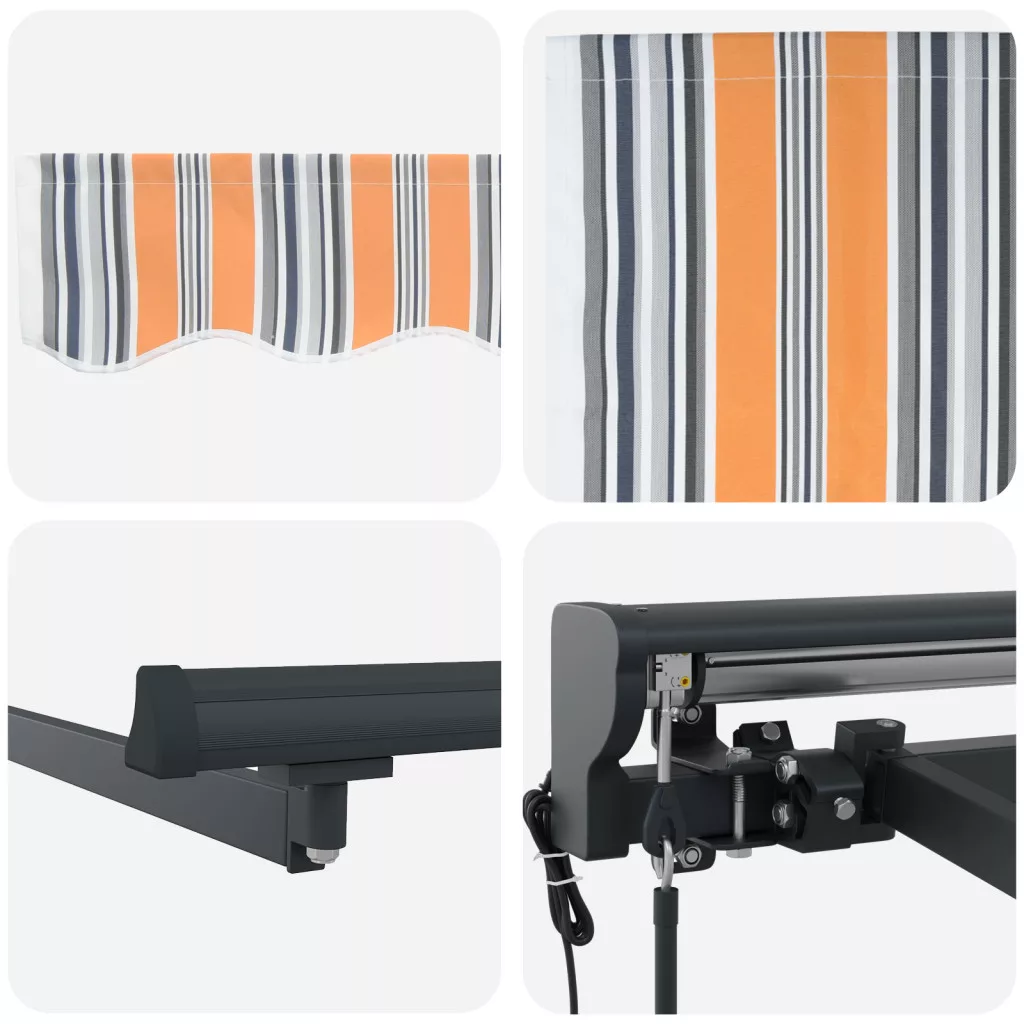 Ez a modern kültéri napellenző fantasztikus kiegészítője minden terasznak vagy kertnek. Stílusos ívei és friss kinézete nemcsak illik a kültéri tereidhez, hanem feldobja a nyári összejövetelek hangulatát is. Sokoldalú árnyékmegoldás, ideális családi vacsorákhoz vagy nyugodt időtöltéshez, rengeteg árnyékot és stílust kínál. UV-álló Design: Tökéletes a napos napokra, ez a napellenző olyan anyagokból készült, amik bírják a napot, így te és a vendégeid a hűs árnyékban lazíthattok anélkül, hogy aggódnotok kellene a kopás miatt. Modern, Sleek Megjelenés: Kortárs stílusa tiszta vonalakat és friss hangulatot kínál, így tökéletesen illik a mai kültéri trendekhez. Tényleg feldobja a kültéri életteredet. Állítható Karfák: Állítsd be a saját kényelmedért az állítható karfákat, amikkel mozgathatod a legjobb árnyék érdekében. Könnyű és kényelmes a kint ülni, még ha hosszabb ideig lazítasz is. Behúzható Funkció: A behúzható funkció lehetővé teszi, hogy könnyedén visszahúzd, amikor éppen nincs szükséged rá, ami szuper az időjárás változása esetén. Ezen kívül segít hosszabbítani az élettartamát, mert nem tartózkodik folyamatosan a napon. Összeszerelve a Nyári Szórakozáshoz: Össze kell raknod, de ne aggodj; egyszerű. Miután felállítottad, a kültéri tered egy árnyékos menedékké válik, ami tökéletes a pihenéshez vagy szórakozáshoz. Veszély! Kinyitáskor a rugó erősen kipattan. NE távolítsa el a kötelet addig, amíg az összes összeszerelési lépést be nem fejezte, az összes csavart nem rögzítette és az elem nincs a falhoz rögzítve! Figyelem! Legyen óvatos a karok kilazításakor, mert azok feszültség alatt állnak! Az összecsukható kar hirtelen kiengedése sérülést okozhat. Figyelmeztetés: A termék használata előtt el kell olvasni a használati útmutatót. Figyelem: A fagyos körülmények között történő használat kárt tehet a termékben. Külső felhasználás épületeknél és egyéb építkezéseknél. Ne engedje, hogy a gyerekek a redőny vezérlőeszközével játszanak. Tartsa a távirányítót távol a gyermekektől.