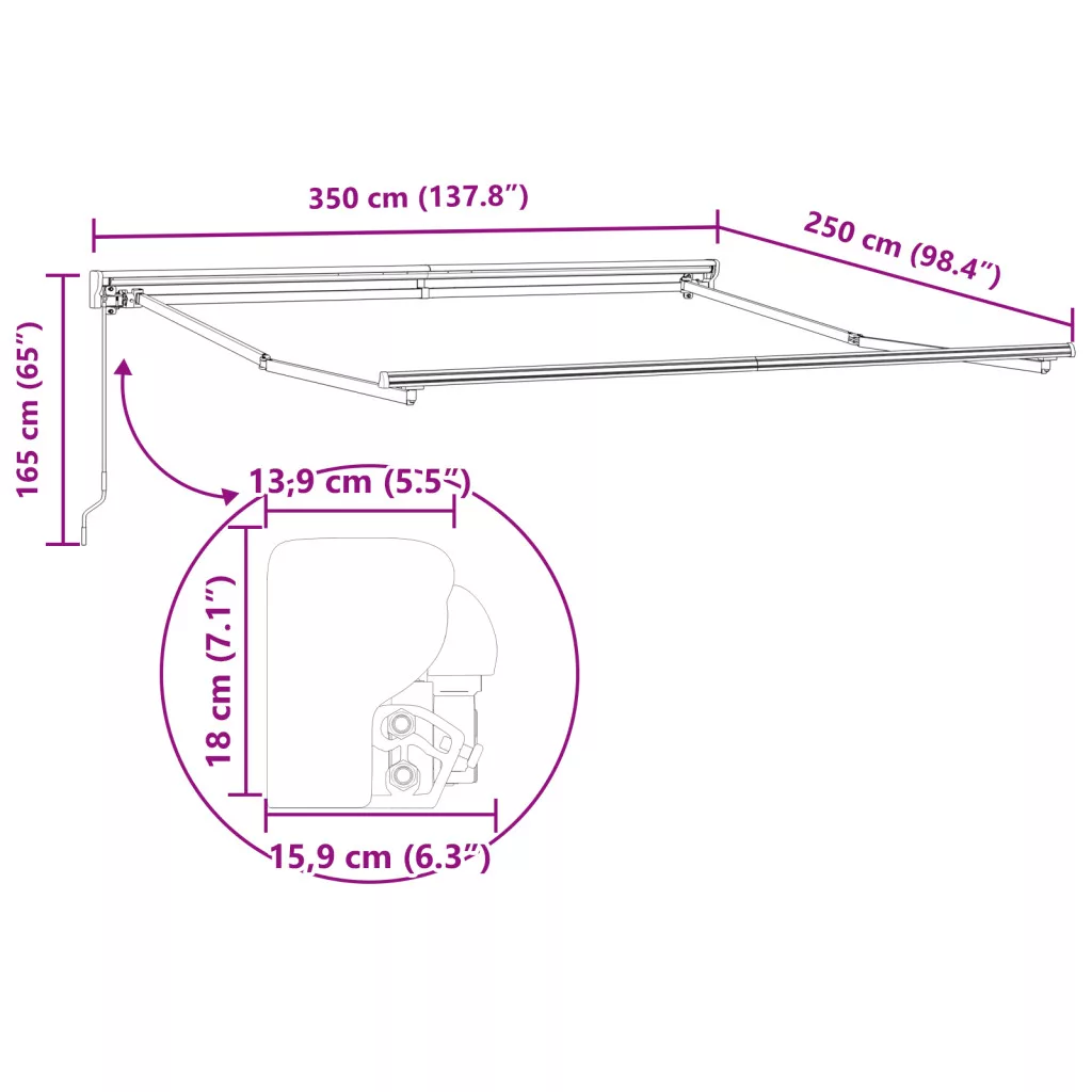 Ez a modern kültéri napellenző fantasztikus kiegészítője minden terasznak vagy kertnek. Stílusos ívei és friss kinézete nemcsak illik a kültéri tereidhez, hanem feldobja a nyári összejövetelek hangulatát is. Sokoldalú árnyékmegoldás, ideális családi vacsorákhoz vagy nyugodt időtöltéshez, rengeteg árnyékot és stílust kínál. UV-álló Design: Tökéletes a napos napokra, ez a napellenző olyan anyagokból készült, amik bírják a napot, így te és a vendégeid a hűs árnyékban lazíthattok anélkül, hogy aggódnotok kellene a kopás miatt. Modern, Sleek Megjelenés: Kortárs stílusa tiszta vonalakat és friss hangulatot kínál, így tökéletesen illik a mai kültéri trendekhez. Tényleg feldobja a kültéri életteredet. Állítható Karfák: Állítsd be a saját kényelmedért az állítható karfákat, amikkel mozgathatod a legjobb árnyék érdekében. Könnyű és kényelmes a kint ülni, még ha hosszabb ideig lazítasz is. Behúzható Funkció: A behúzható funkció lehetővé teszi, hogy könnyedén visszahúzd, amikor éppen nincs szükséged rá, ami szuper az időjárás változása esetén. Ezen kívül segít hosszabbítani az élettartamát, mert nem tartózkodik folyamatosan a napon. Összeszerelve a Nyári Szórakozáshoz: Össze kell raknod, de ne aggodj; egyszerű. Miután felállítottad, a kültéri tered egy árnyékos menedékké válik, ami tökéletes a pihenéshez vagy szórakozáshoz. Veszély! Kinyitáskor a rugó erősen kipattan. NE távolítsa el a kötelet addig, amíg az összes összeszerelési lépést be nem fejezte, az összes csavart nem rögzítette és az elem nincs a falhoz rögzítve! Figyelem! Legyen óvatos a karok kilazításakor, mert azok feszültség alatt állnak! Az összecsukható kar hirtelen kiengedése sérülést okozhat. Figyelmeztetés: A termék használata előtt el kell olvasni a használati útmutatót. Figyelem: A fagyos körülmények között történő használat kárt tehet a termékben. Külső felhasználás épületeknél és egyéb építkezéseknél.
