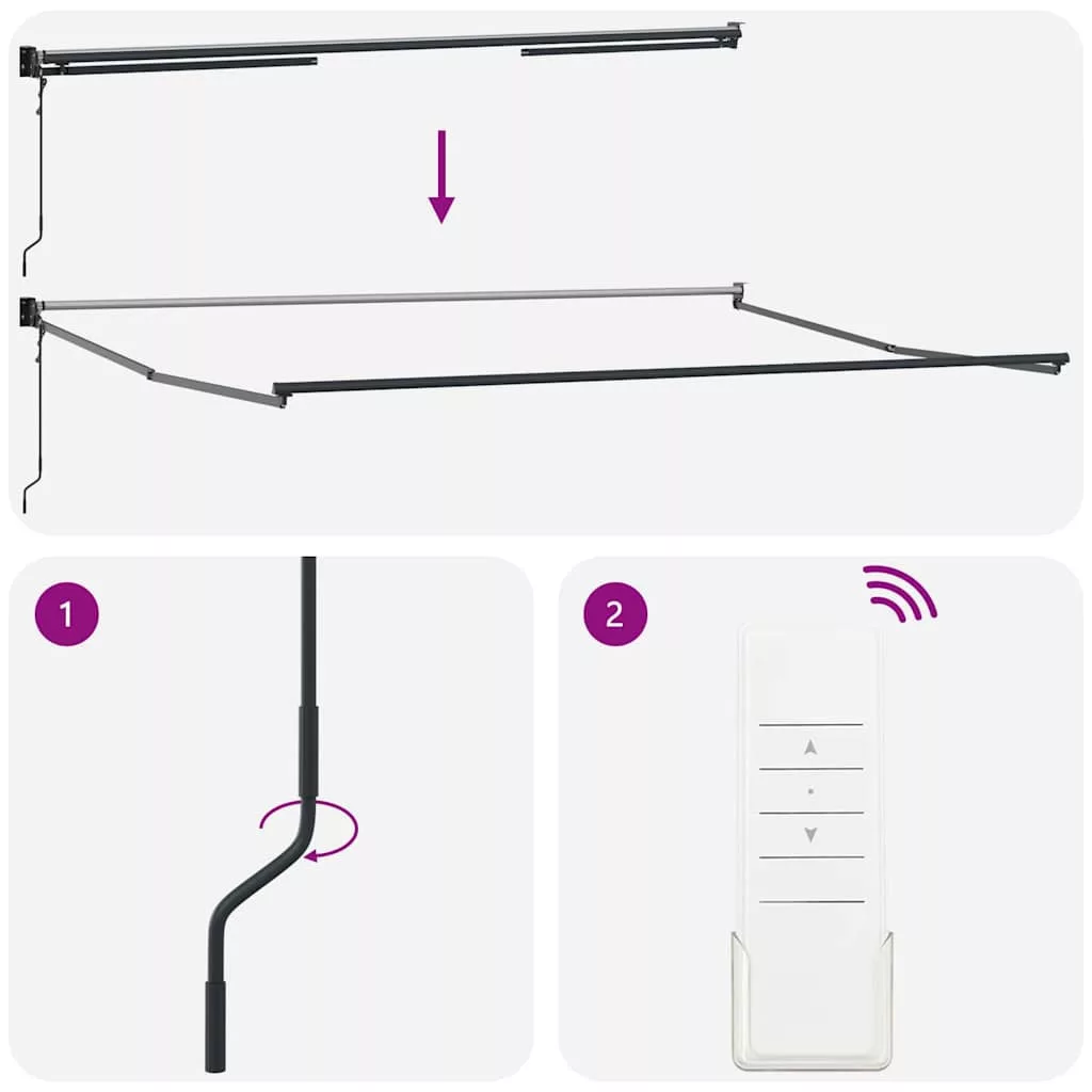 Ez a modern, behúzható napellenző kifejezetten kültéri használatra készült. Tökéletes kombinációja a funkcióknak és a stílusnak a kertedhez vagy a teraszodhoz. Egyszerű vonalai és letisztult stílusa miatt remekül passzol bármilyen modern kültéri térbe, és állítható árnyékot kínál teraszok és pihenők számára. A csíkos mintája és a kézi behúzás jól alkalmazkodik különböző árnyékolási igényekhez és szuper fel tudja dobni az egész környezetet. Minőségi anyag: 100% poliészter. Ez az árnyékoló időjárásálló, és kiszolgálja a kültéri használat igényeit. Napos időben kényelmes árnyékot nyújt, szuper tartós. Teljes alkatrészek: Masszív acél keret stílusos megjelenéssel, és könnyen kezelhető távirányítóval együtt. A keret biztosítja a stabilitást, az anyag pedig szép esztétikát ad. Minden alkatrész hozzájárul a hatékony árnyékoláshoz, így az összeszerelés is egyszerű. Design és funkcionalitás: Modern stílus, minimalista hatással. A behúzható funkcióval könnyen válthatsz a napos időpontokról a szükséges árnyékra, alkalmazkodik minden időjárási körülményhez. Rugalmas használat: Kerti és teraszokhoz egyaránt passzol, és szükséges árnyékot biztosít. A dizájn rugalmas telepítési lehetőségeket kínál, remekül passzol bármilyen környezethez. Tökéletes az esztétikai és praktikus árnyékolók iránt érdeklődőknek. Karbantartási útmutató: Könnyű karbantartás, csak egy nedves ruhával törölgesd. Így frissen tartod a napellenzőt, és biztosítod a tartósságát. Rendszeres tisztítással elkerülheted a penészesedést is, így meghosszabbítja az élettartamát. Ez a készülék 8 éves vagy annál idősebb gyermekek, valamint csökkent fizikai, érzékszervi vagy mentális képességekkel rendelkező személyek, vagy tapasztalatlanok és tudás híján lévők számára is használható, ha megfelelő felügyeletet kaptak, vagy útmutatást kaptak a készülék biztonságos használatáról, és megértik a vele járó veszélyeket. A gyermekek nem játszhatnak a készülékkel. A tisztítást és karbantartást a gyermekek nem végezhetik felügyelet nélkül. Ha a tápkábel sérült, azt a gyártónak, annak szervizügynökének vagy hasonlóan képzett személynek kell kicserélnie, hogy elkerülje a veszélyeket. FIGYELEM: Fontos biztonsági utasítások. Az emberek biztonsága érdekében fontos, hogy kövessük ezeket az utasításokat. Őrizze meg ezeket az utasításokat. FIGYELEM: Fontos biztonsági utasítások. Kövesse az összes utasítást, mivel a helytelen telepítés súlyos sérüléshez vagy akár halálhoz vezethet. Ne engedje, hogy gyermekek játsszanak a vezérlő eszközzel. Tartsa a távirányítót távol a gyermekektől. Ne működtesse a napernyőt, miközben karbantartást, például ablakmosást végeznek a közelben. A meghajtó mozgó alkatrészeit legalább 2,5 m magasságban kell telepíteni a padlóról, vagy más olyan szinten, amely hozzáférést biztosíthat hozzájuk. A meghajtó telepítése előtt távolítsa el az összes felesleges vezetéket, és kapcsolja ki azokat az eszközöket, amelyek nem szükségesek a működtetéshez. Az eltorzított kikapcsoló kapcsoló működtető eleme közvetlen látótávolságon belül legyen a meghajtott részhez, de távol a mozgó alkatrészektől. Minimum 1,5 m magasságban kell telepíteni.Veszély! Kinyitáskor a rugó erősen kipattan. NE távolítsa el a kötelet addig, amíg az összes összeszerelési lépést be nem fejezte, az összes csavart nem rögzítette és az elem nincs a falhoz rögzítve! Figyelem! Legyen óvatos a karok kilazításakor, mert azok feszültség alatt állnak! Az összecsukható kar hirtelen kiengedése sérülést okozhat. Figyelmeztetés: A termék használata előtt el kell olvasni a használati útmutatót. Figyelem: A fagyos körülmények között történő használat kárt tehet a termékben. Külső felhasználás épületeknél és egyéb építkezéseknél.