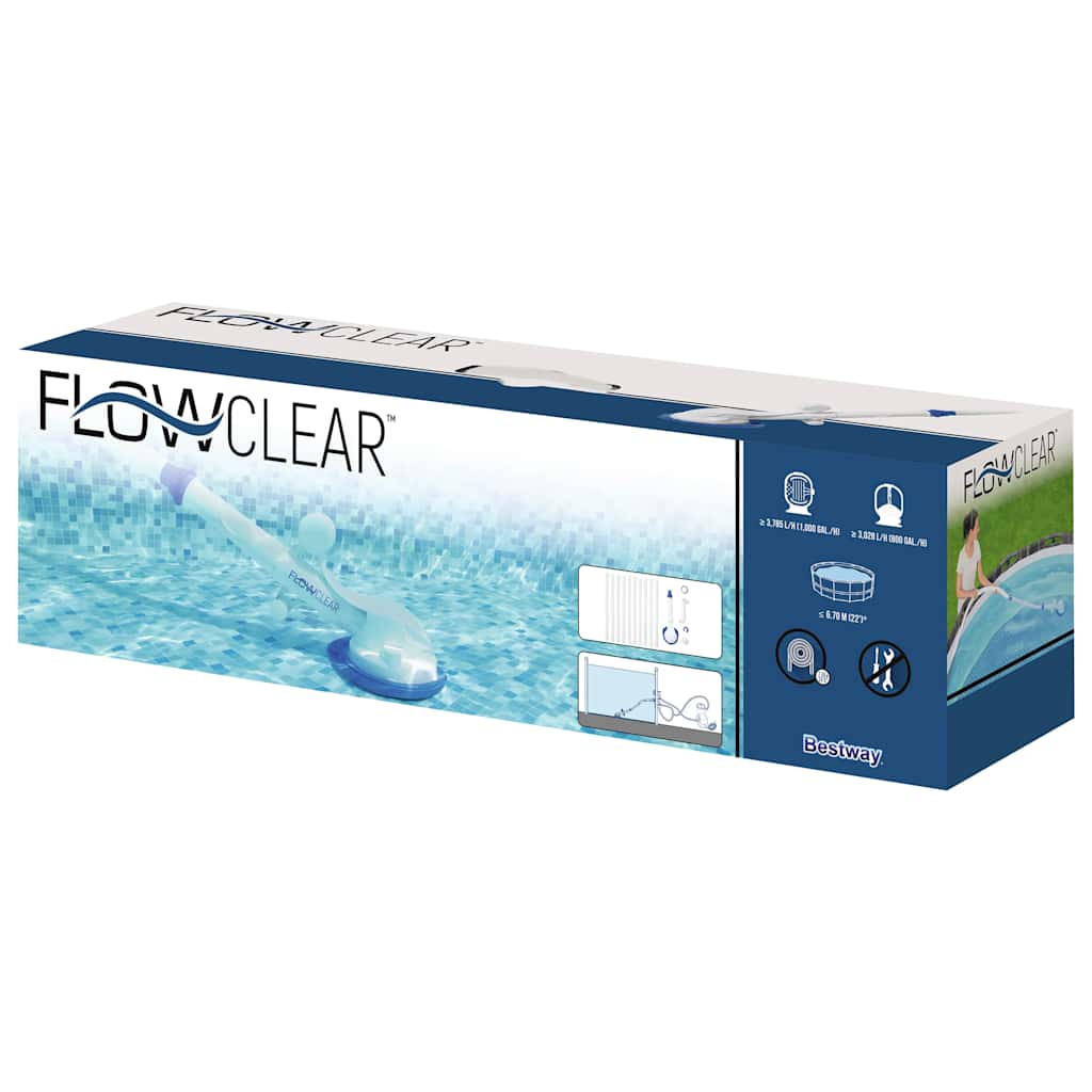 A szabadalmaztatott kialakítás Bestway Flowclear AquaSweeper automata porszívó kifejezetten alacsony áramlású szűrőrendszerekkel ellátott talajszint feletti medencékhez készült. A szívókészülék integrált előszűrője az élettartam meghosszabbítása és az akadályok elkerülése érdekében összegyűjti a medence alján felhalmozódott törmeléket, leveleket és homokot, mielőtt azok elérnék a fő szűrőt. Az elszívó alsó részén elhelyezett kliprendszer lehetővé teszi, hogy a tartályrekeszt nagyon könnyen és tisztán nyissa és vegye ki. Emellett a szívókészülék úszóval lett felszerelve, amely a végén lévő nehezékkel együtt nagyobb manőverezhetőséget garantál a vízben, és könnyebben csúszik a medence alján és falain. Az AquaSweeper porszívó használata nagyon egyszerű, a rendszer indításához egyszerűen csatlakoztassa a medence szűrőszivattyújához. A nyomásszabályozó segít a bevezetett víz áramlásának szabályozásában, így akkor is használhatja, ha nagy teljesítményű szűrőszivattyúval rendelkezik. A szívás gyorsan és csendesen zajlik, és folyamatosan segíteni fogja Önt a 7,5 méter hosszú rugalmas tömlő, amely lehetővé teszi, hogy elérje a medence legtávolabbi pontjait. A mellékelt csatlakozókkal a porszívó kompatibilis a Bestway kollekció összes medencéjével, még a puha szerkezetű medencékkel is.