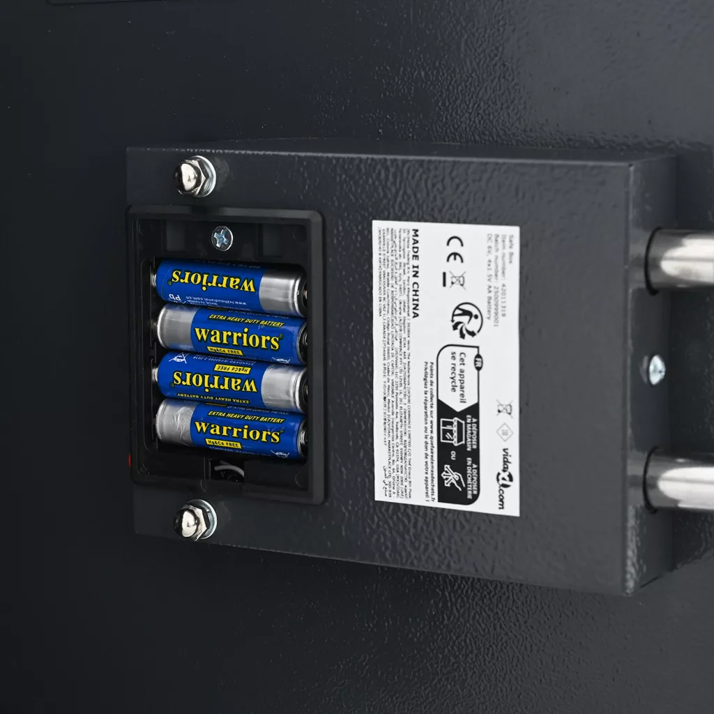 Ez a digitális billentyűzetzáras széf alapvető kellék minden irodához vagy tanulószobához. Biztonságos módja a személyes értékek és fontos dokumentumok védelmének. Modern dizájnja és funkciói miatt jól illeszkedik a kortárs munkahelyekhez, nyugalmat adva, miközben minden rendezett marad. Digitális billentyűzetes belépés: Ez a legújabb elektronikus billentyűzet biztosítja, hogy csak azok tudjanak bejutni a széfbe, akik a megfelelő kóddal rendelkeznek, növelve a biztonságot a nem kívánt hozzáférés ellen. Tartós kivitelezés: Kiváló acélból és krómból készült, ez a széf ellenáll a gyakori használatnak és a betörésnek, így értékeid mindig védve maradnak. Különböző használatra alkalmas: Tökéletes a fontos dokumentumok és személyes tárgyak védelmére találkozók alatt vagy otthoni munka közben, kényelmes megoldást adva különböző helyzetekben. Kompakt és stílusos: Modern kocka alakú és matt felületének köszönhetően szép látványt nyújt, és szorosan illeszkedik a kisebb helyekhez anélkül, hogy zavaró lenne. Könnyű karbantartás: Egyszerű letörléssel és nedves ruhával tisztán tartható a széf, alig némi fáradtság árán. Ez a termék elemeket tartalmaz. Kérjük, olvassa el az utasítást az elemek eltávolításához. WEEE, akkumulátorok termékek potenciális hatással lehetnek a környezetre és az emberi egészségre a veszélyes anyagok jelenléte miatt. Kérjük, gondoskodjon arról, hogy az elektromos és elektronikus berendezések hulladékait/akkumulátorokat a helyi jogszabályoknak megfelelően újrahasznosítsa. Kérjük, látogasson el a vidaXL weboldalára, hogy megtalálja a helyi WEEE/akkumulátorok gyűjtési rendszerét. A termék csak a használati utasításban megadott akkumulátor-specifikációkkal használható.