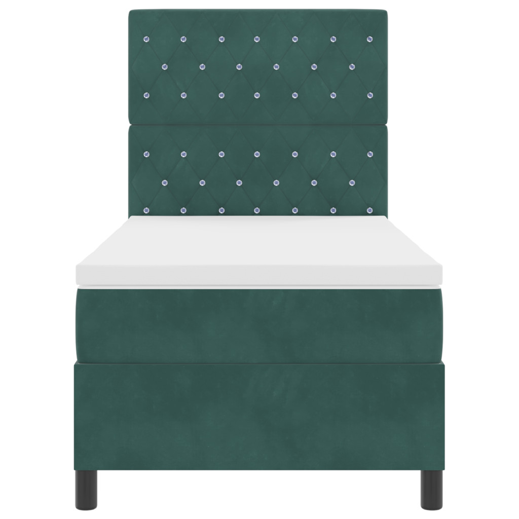 Boxspring Ágy Matrac & LED Sötét Zöld 100x200 cm Bársony