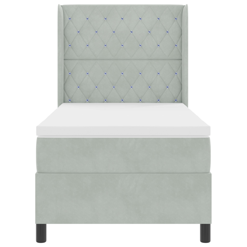 Boxspring Ágy Matraccal & LED Fény Világosszürke 100x200 cm Bársony