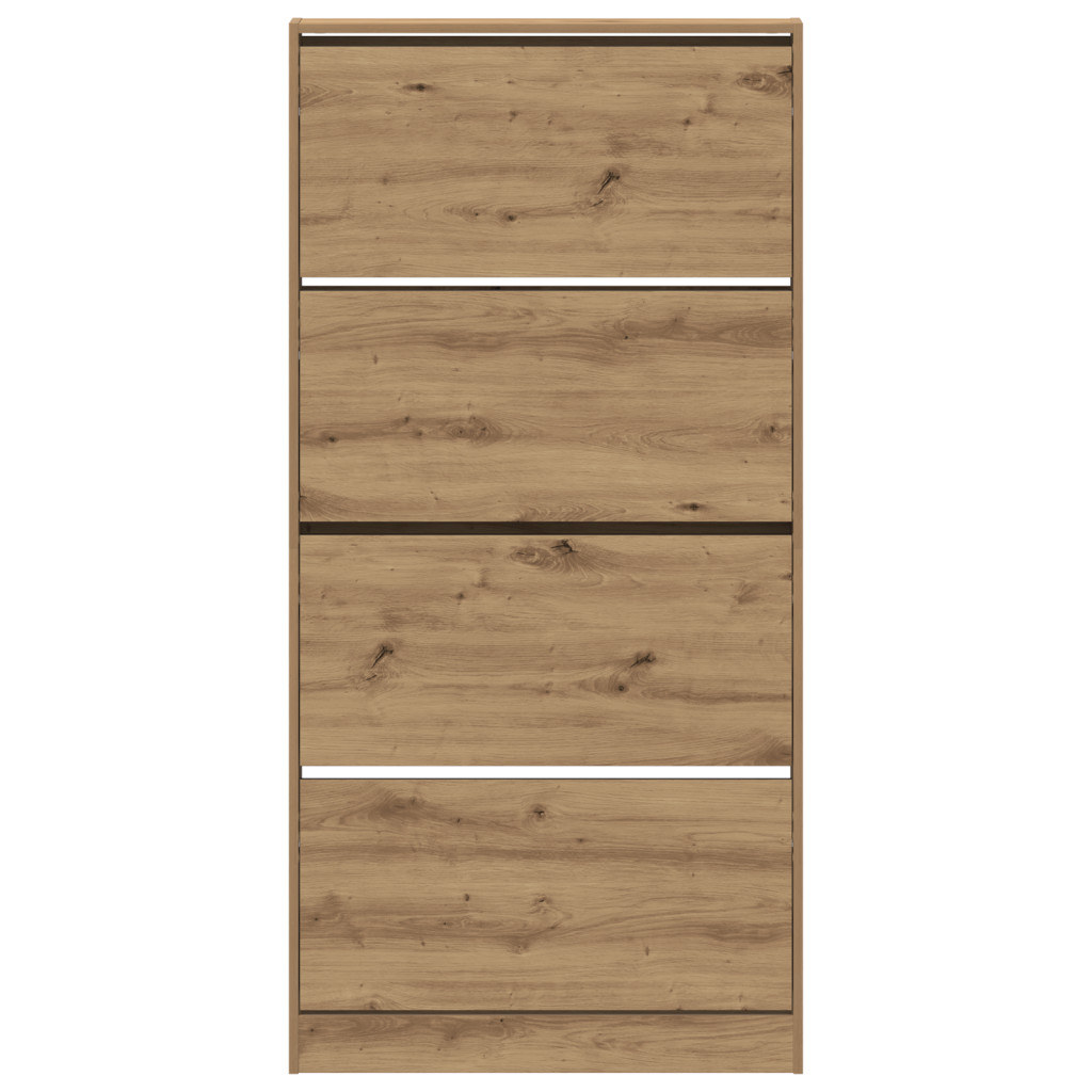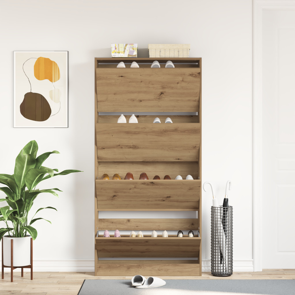 Ez a cipő tároló szekrény 4 lehajtható fiókkal ötvözi a stílust és a funkciót, okosabbá téve a folyosót vagy nappalit, rengeteg tárolóhelyet adva. A texturált kézműves tölgyborítása modern érzetet ad, segít a cipőd könnyű rendezésében, így semmi nem zavarja meg a rendet. Hatalmas belső tér négy lehajtható fiókkal a cipők számára, kéznél és rendezett tartás érdekében. Elegáns texturált kézműves tölgyborítás fokozza a dekorációdat, harmonikusan illeszkedik a modern stílusokhoz. Tartós szereltfából készült, ez a szekrény nap mint nap megőrzi formáját. Kompakt mérete tökéletes a kisebb helyekhez, tökéletesen elfér minden folyosón, bejáratnál vagy szekrényben. Praktikus lehajtható fiókok, amelyek remek módot kínálnak a cipők tárolására és védelmére.