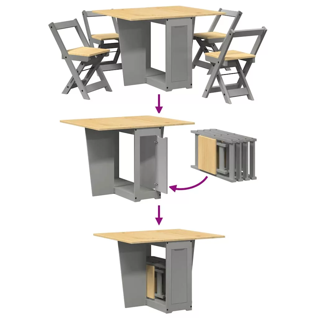 Corona 5 részes összecsukható szürke fenyő étkezőgarnitúra