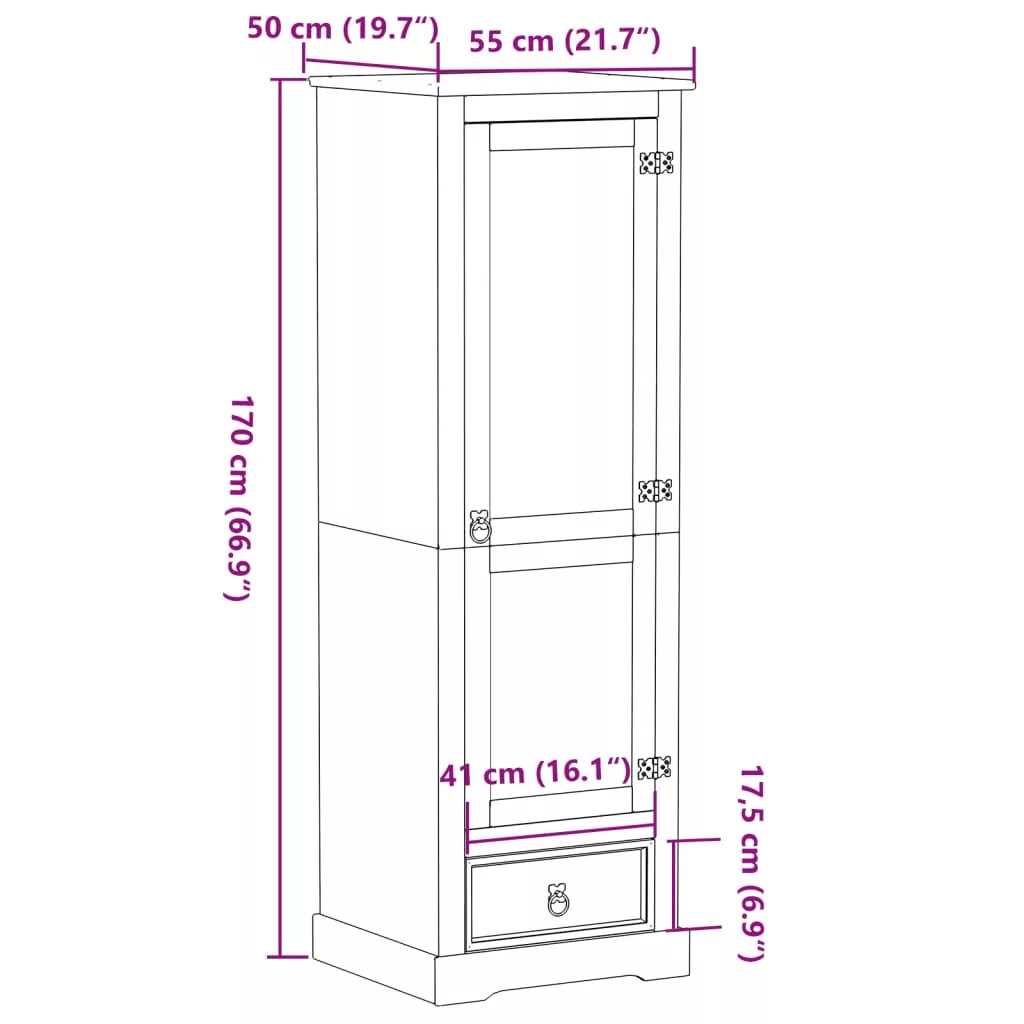 Ez a klasszikus stílusú faszekrény bőséges tárolóhelyet biztosít ruhái, cipői és kiegészítői rendezett tárolásához. Tömör fenyőfa: A tömör fenyőfa egy gyönyörű természetes anyag. A fenyőfa egyenes erezetű, a csomók pedig jellegzetes, rusztikus megjelenést biztosítanak az anyagnak. A tömör fenyőfából készült tárolószekrény strapabíró és masszív.Bőséges tárolóhely: Ez a szekrény bőséges helyet biztosít mind a hosszabb, mind az összehajtogatott ruhák vagy kiegészítők, például pulóverek, farmerek, sapkák, kézitáskák stb. számára.Fém fogantyúk: A hálószobai gardróbszekrény fém fogantyúkkal rendelkezik, amelyek megkönnyítik a fiók és az ajtó nyitását és csukását, miközben tovább növelik szépségét. Figyelem:A felborulás elkerülése érdekében ezt a terméket a mellékelt fali rögzítőeszközzel kell használni.