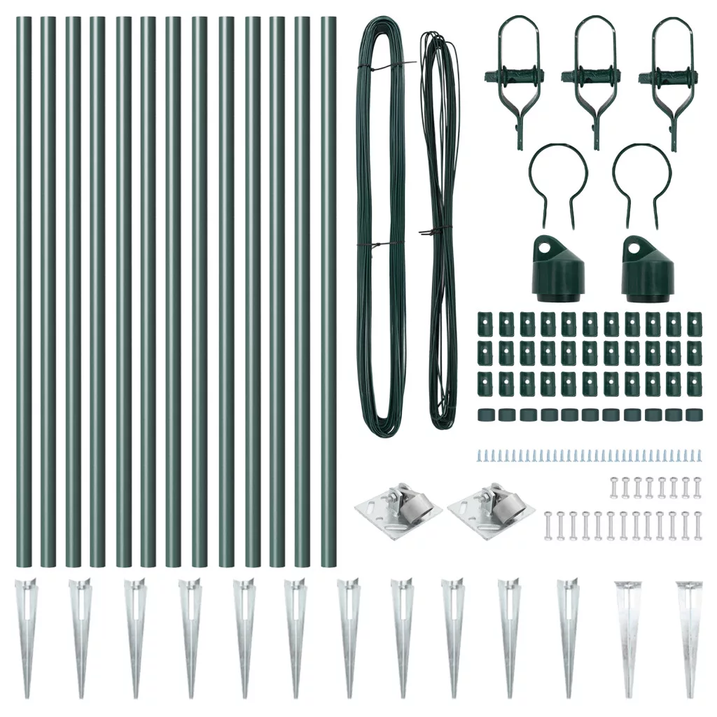 Ez a vidaXL cövek készlet erős támaszt nyújt kültéri kerítési munkákhoz, ötvözve a praktikát a modern megjelenéssel. A fényes zöld felület szuper a kerted vagy kültéri helyeid feldobásához, miközben stabil tartást ad bármilyen projekthez. • **Tartós kivitel:** Horganyzott acélból készült, porszórt felülettel, ezek az oszlopok kiemelkedő teljesítményt nyújtanak a rozsda és a kopás ellen. • **Időjárásálló:** Kültéri használatra tervezték, ezek az oszlopok megbízhatóan állják az időjárási kihívásokat, biztosítva a kerítések biztonságát. • **Nagy méret:** 120 cm magas és Ø32 mm széles, ezek az oszlopok tökéletesek különböző kerítési és határprojektekhez. • **Átfogó készlet:** Ez a mindent tartalmazó készlet minden szükséges elemet tartalmaz a gyors beállításhoz, beleértve a szögletes talapzatokat és feszítő drót támogatókat. • **Sokoldalú használat:** Nemcsak kerítésekhez ideális, hanem bármilyen támogatásra van szükséged kültéren, amit különböző feladatokhoz is használhatsz.