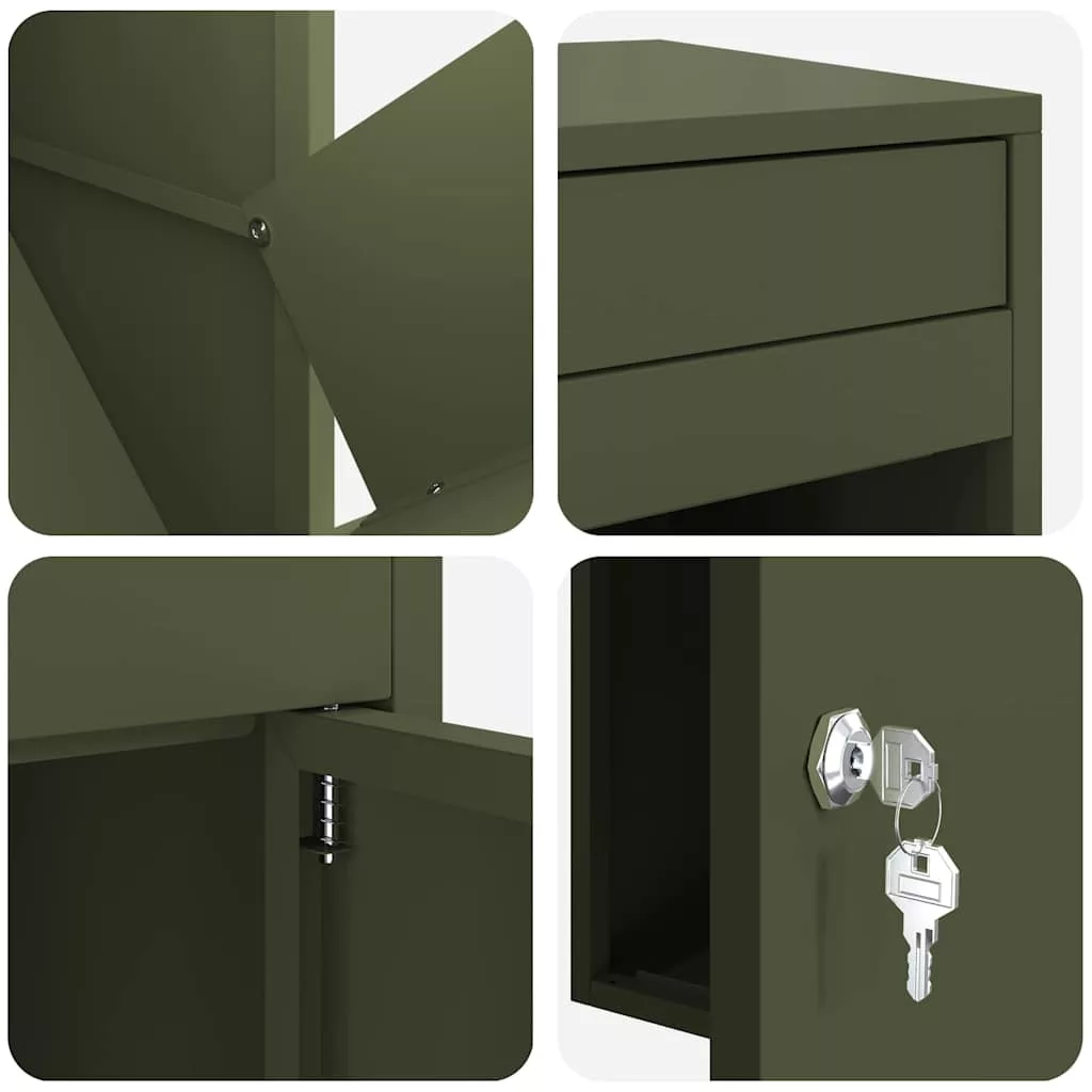 Csomagzáró doboz tárolóval Oliva zöld 41 x 38 x 103 cm Acél