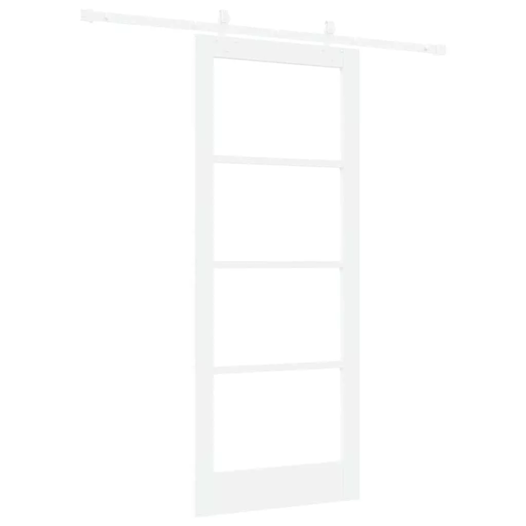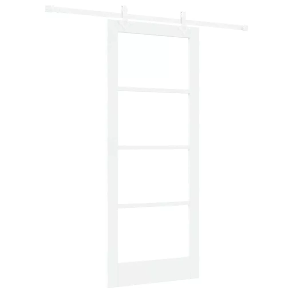 Csúszó ajtó Fehér 83 x 202 cm Tömör fenyőfa és üveg