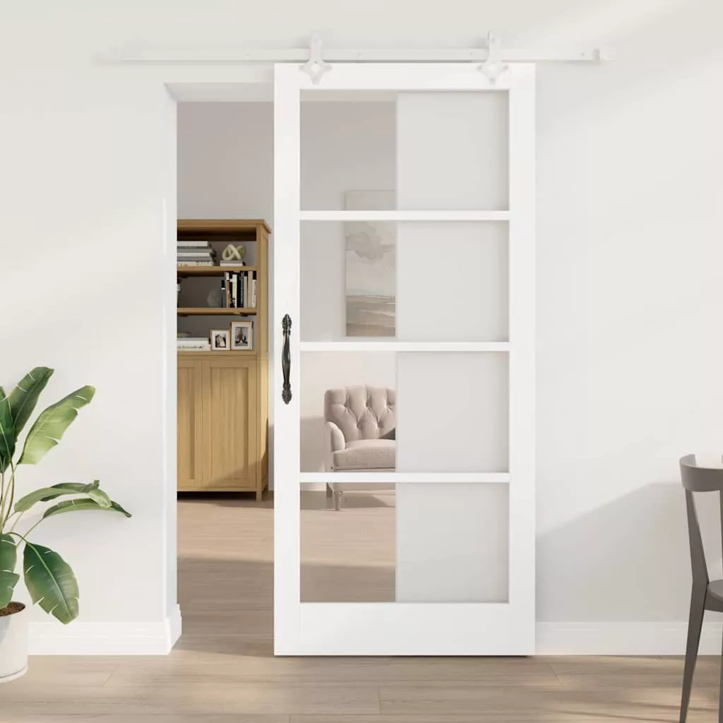 Csúszó ajtó Fehér 93 x 211 cm Tömör fenyőfa és üveg