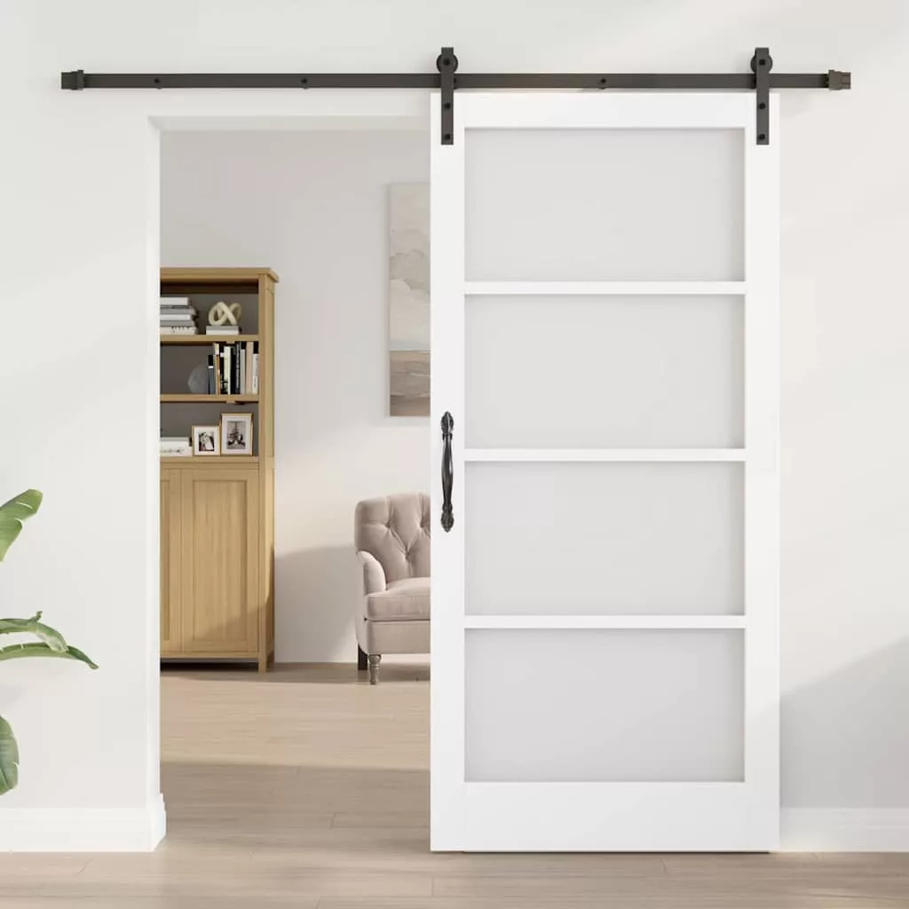 Csúszó ajtó ORKDAL Fehér 93 x 202 cm Tömör fenyőfa és üveg