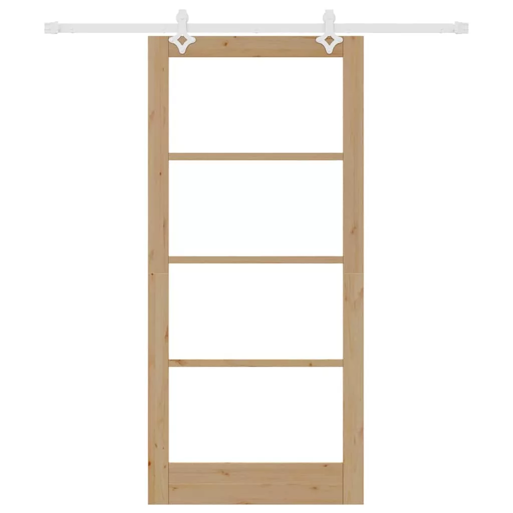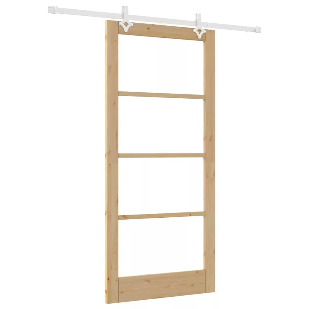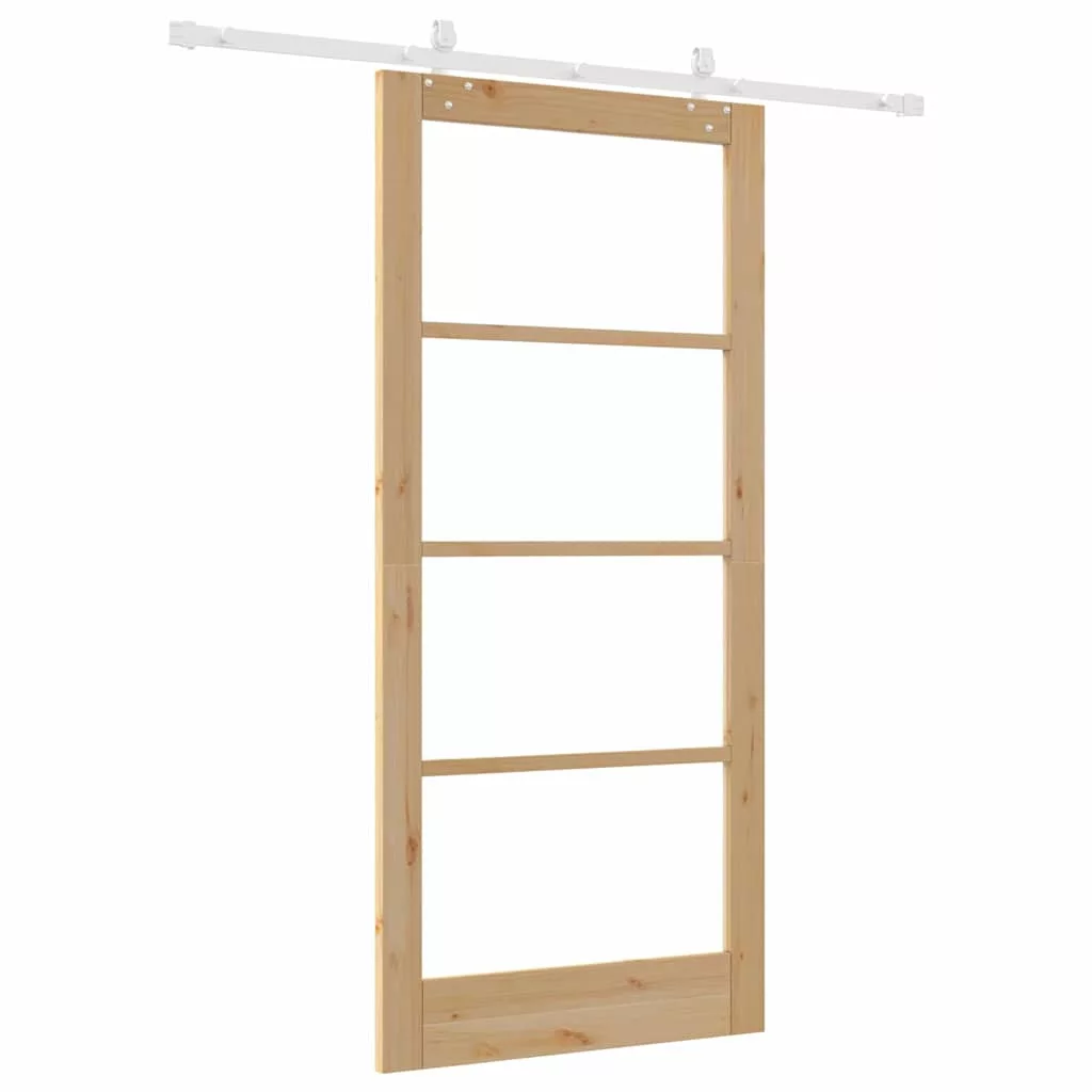 Csúszó ajtó Természetes 93 x 202 cm Tömör fenyőfa és üveg