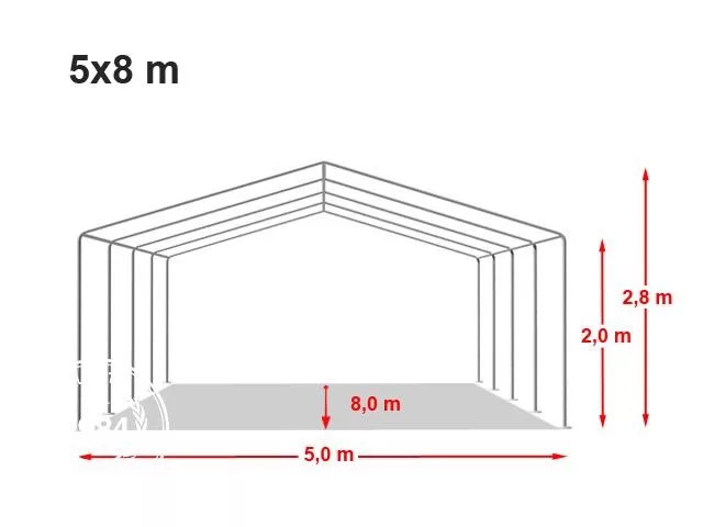 Oldalmagasság: 200cm / középmagasság: 280cmMindegyik oldalfal nagy ablakokkal van felszerelve Az ajtó felhajthatóAcélszerkezet adatai:Átmérő: kb. 38mm / kb. 1,1mm vastagságÖsszekötő elemek átmérője: kb 42mm / kb. 1,2mm vastagságA konstrukció 100%-ban cinkelt acélból áll. Rendkívül stabil, erős, nehéz konstrukcióA sátor tartozékai közé számítanak:Talpak, amelyeket az acélcsövekkel kell összecsavarozniKampók és kötelek a sátor kifeszítéséhezRészletes felépítési útmutató
