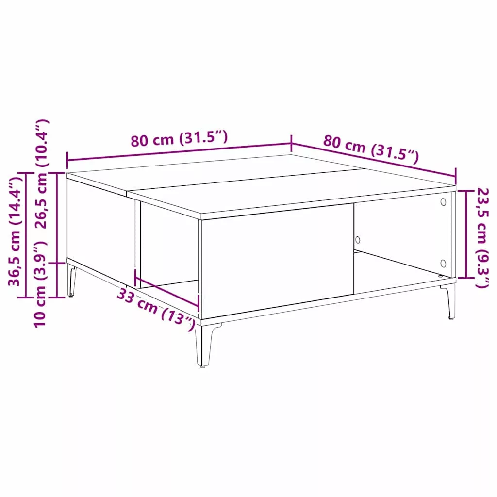 Dohányzóasztal Artisan tölgy 80 x 80 x 36,5 cm Faanyag