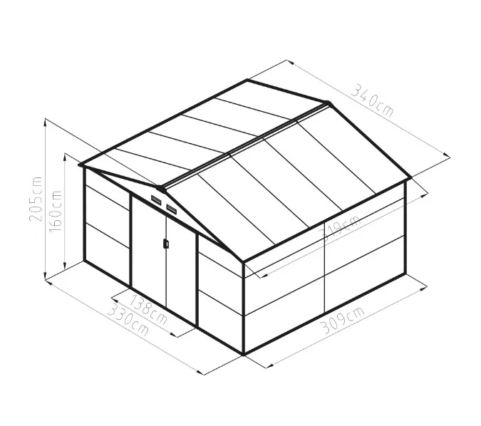 A stabil, horganyzott vázhoz csatlakoztatható a porfestett acéllemez borítás, amely ellenáll az időjárás viszontagságainak. A csomag tartalmazza a zárható ajtófogantyúkat, amelyek biztonságos tárolást biztosítanak a nem kívánt látogatók ellen.