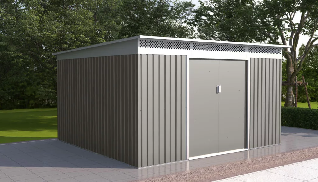 A kerti tároló kétszárnyas ajtóval van ellátva. A bejárat így igazán kényelmes akkor is, ha nagyobb tárgyat visz be vagy ki.
