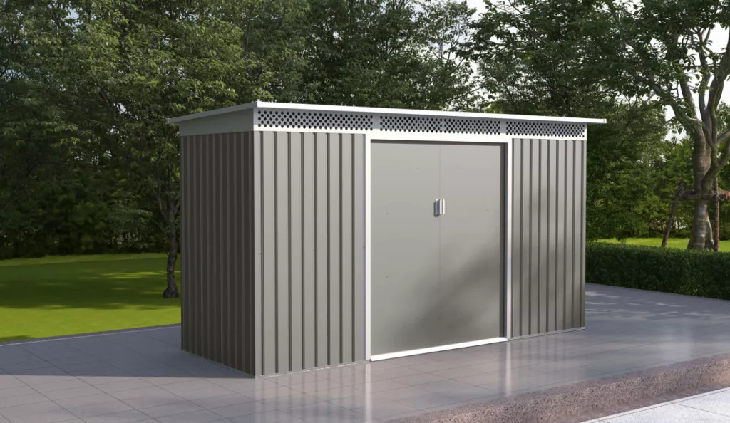 A kerti tároló minőségi profilozott acéllemezből 0,25 - 0,30 mm vastagsággal stabil és megbízható horganyzott acél szerkezettel rendelkezik.Horganyzással és porszórás bevonattal védve vannak a külső valak és a kerti tároló tetője is.